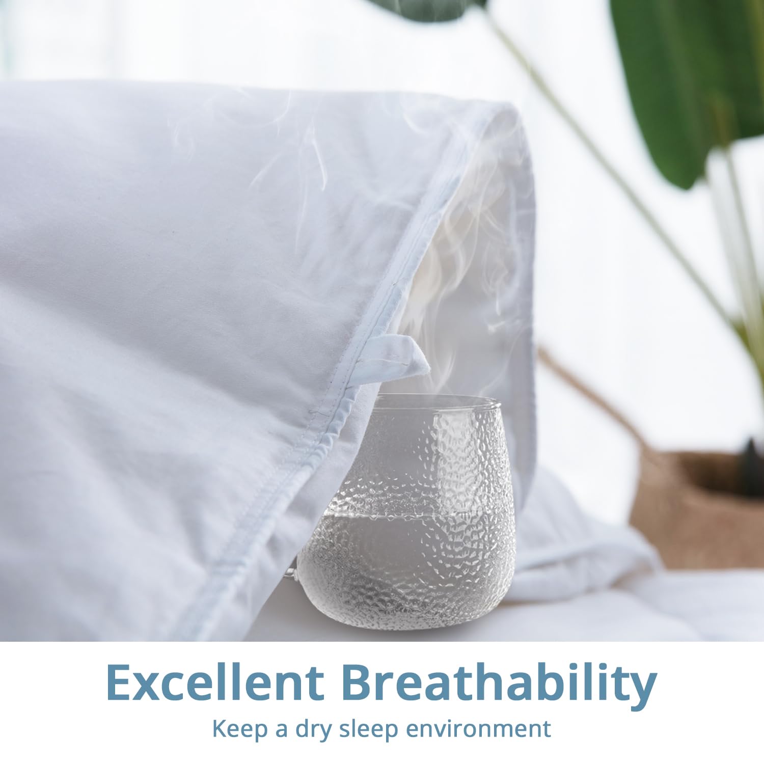 - BREATHABLE & MOISTURE-WICKING High-quality large down cluster and feather filling to ensure just the right amount of warmth while allowing for proper airflow and moisture-wicking. It's perfect for those warm nights or individuals who tend to perspire to provide a comfortable and dry night's sleep.