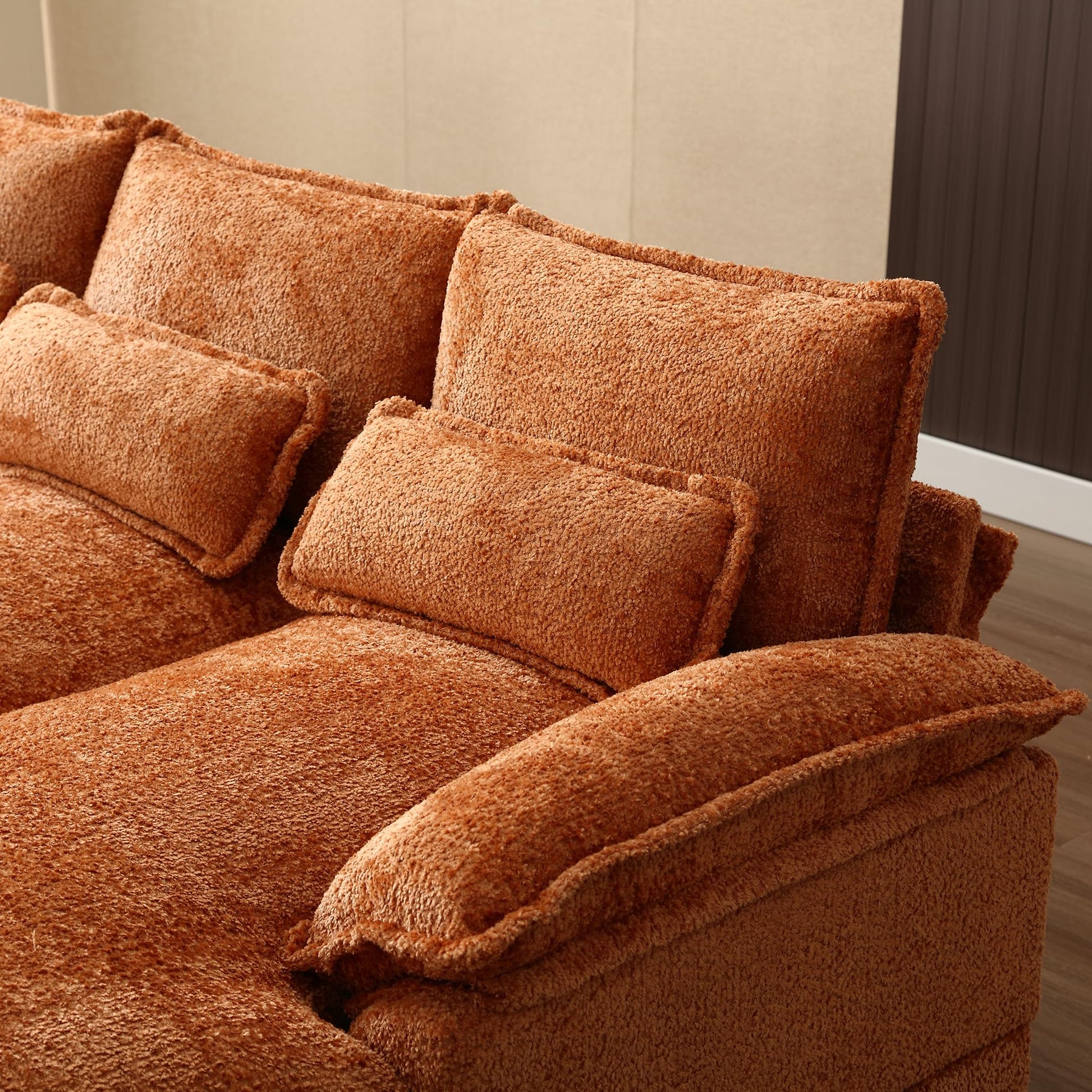 - Comfortable Sectional Couch: The Cloud sectional Sofa features upholstered 2-layer seat cushions with high-resiliency foam to provide a soft and cozy feel, and each seat is equipped with match pillows and cushions, so whether you're sitting down and relaxing or lying down and taking a nap, this sofa will provide you with an unbelievably comfortable experience.