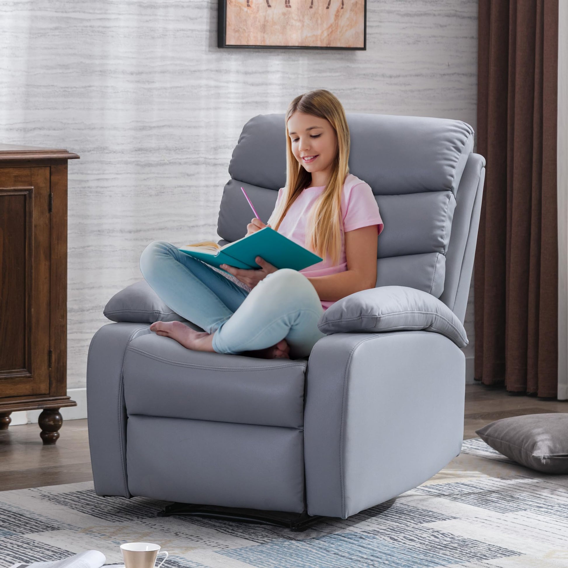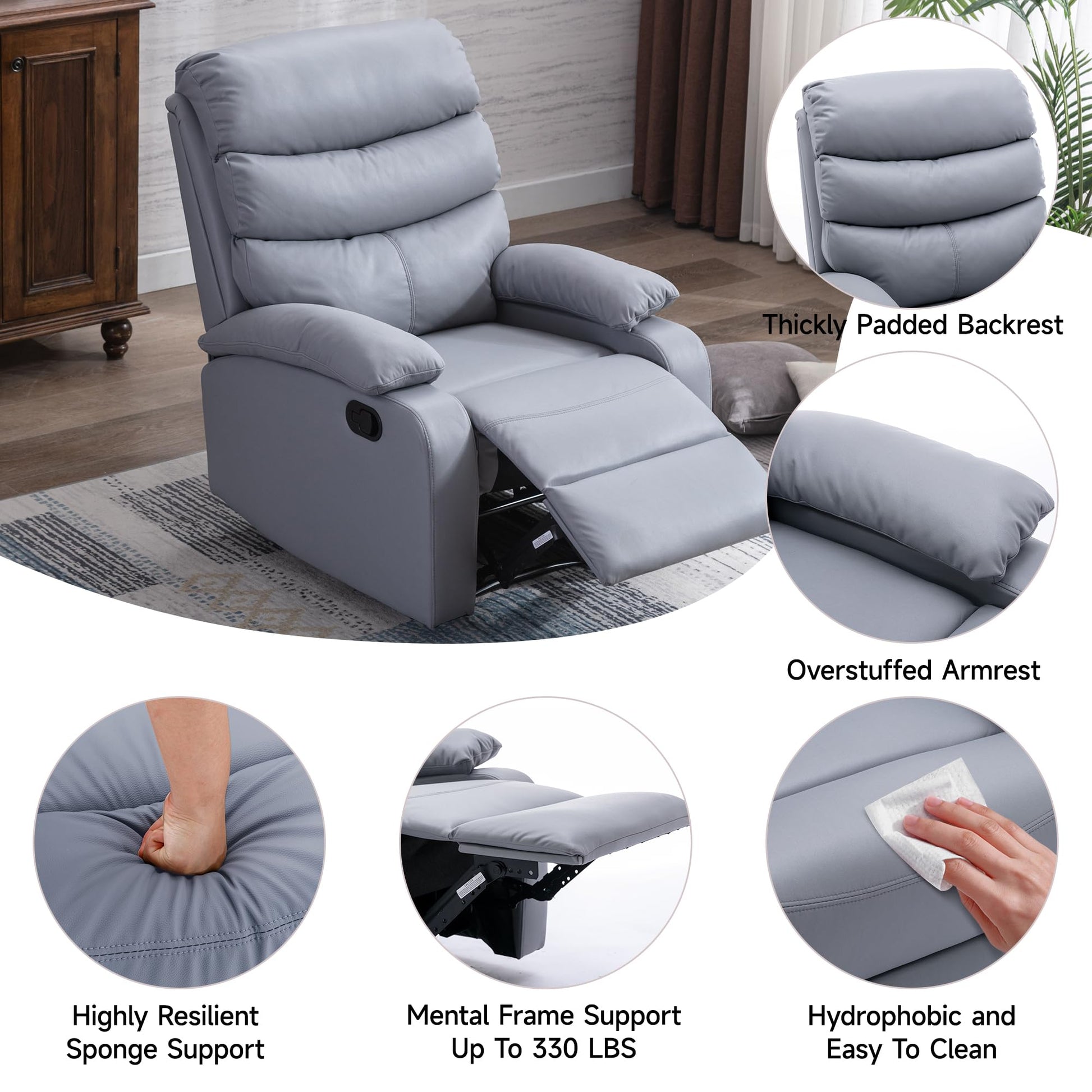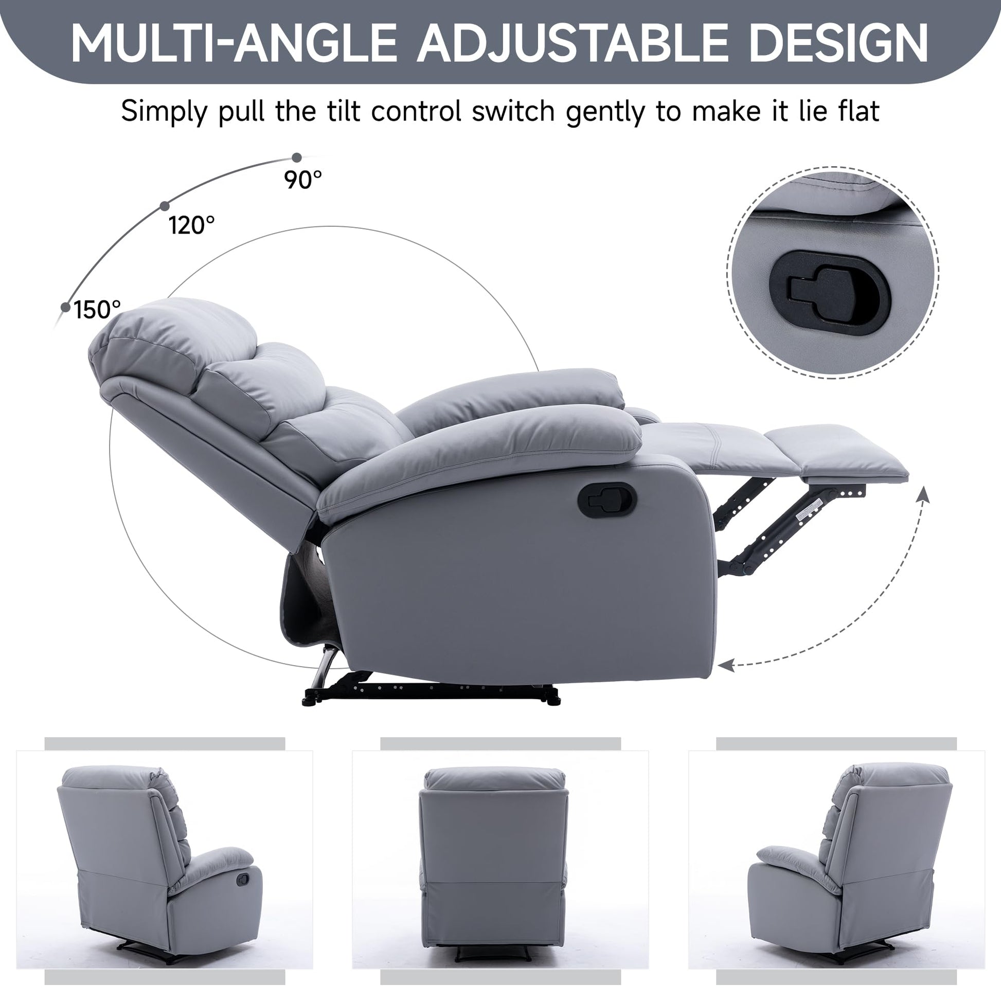 - High Quality Recliners: The grey manual recliner chair for adults is made of New Technology Cloth (Note: Not Tech Leather Fabric), which has the texture of leather, but softer and more breathable than other recliners. Waterproof and easy to clean, and the small recliner chair‘s cushion is filled with high-resilience sponge, giving you a softer and more comfortable experience. This manual recliners for small spaces is the perfect Christmas gift for our family and friends!