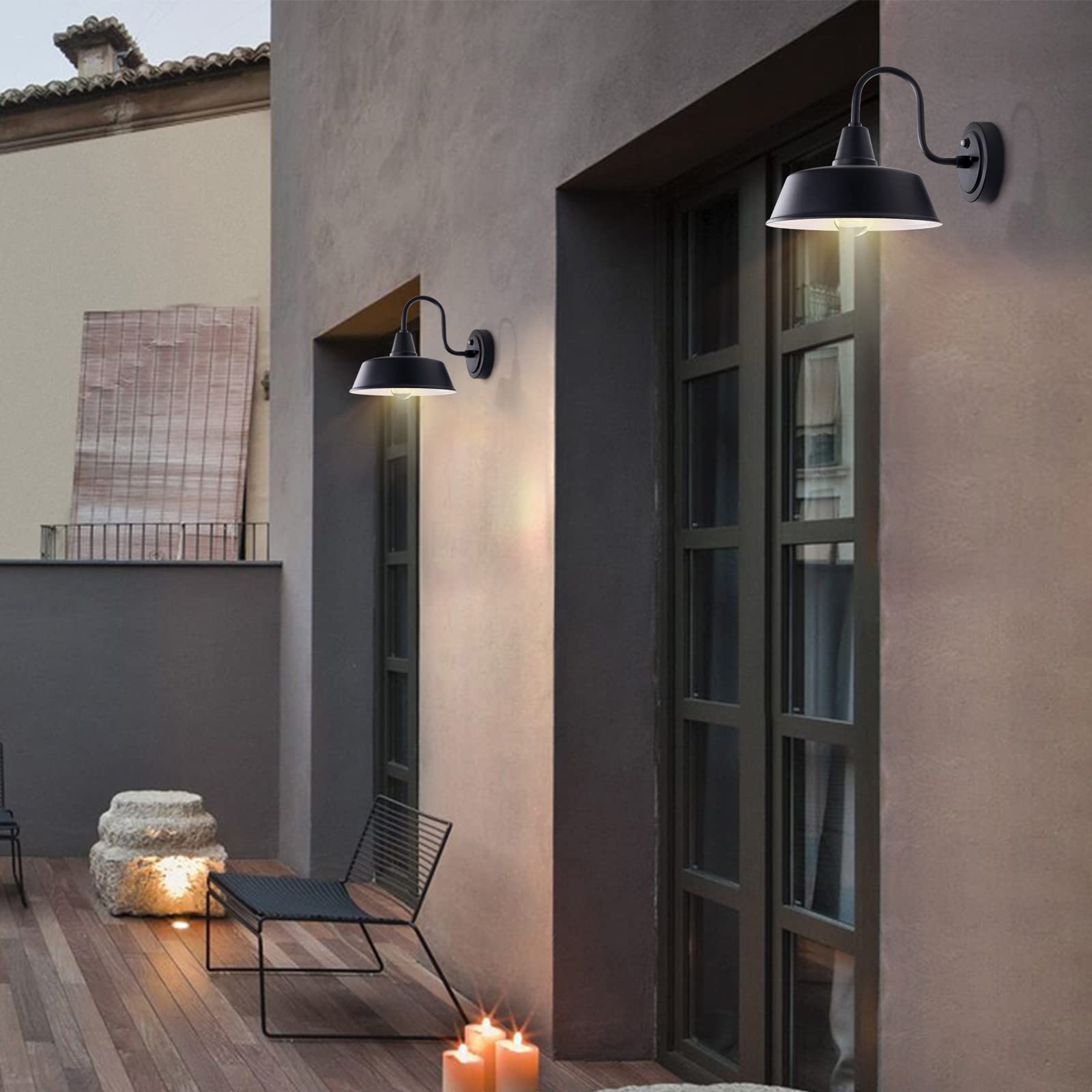 - Vintage Farmhouse Light Design Suitable for Outdoor Wet Location: This 12" dome diameter outside wall light gooseneck in matte black finish exterior with white interior, plus classic gooseneck arm and dome design, make GOALPLUS farm style outdoor light fixture look retro and industrial. Its simple and elegant looking suitable for porch, patio, farmhouse, garden, garage, deck, entryway, front door, balcony, corridor, creates a pleasing look and a simplistic element to any exterior house space