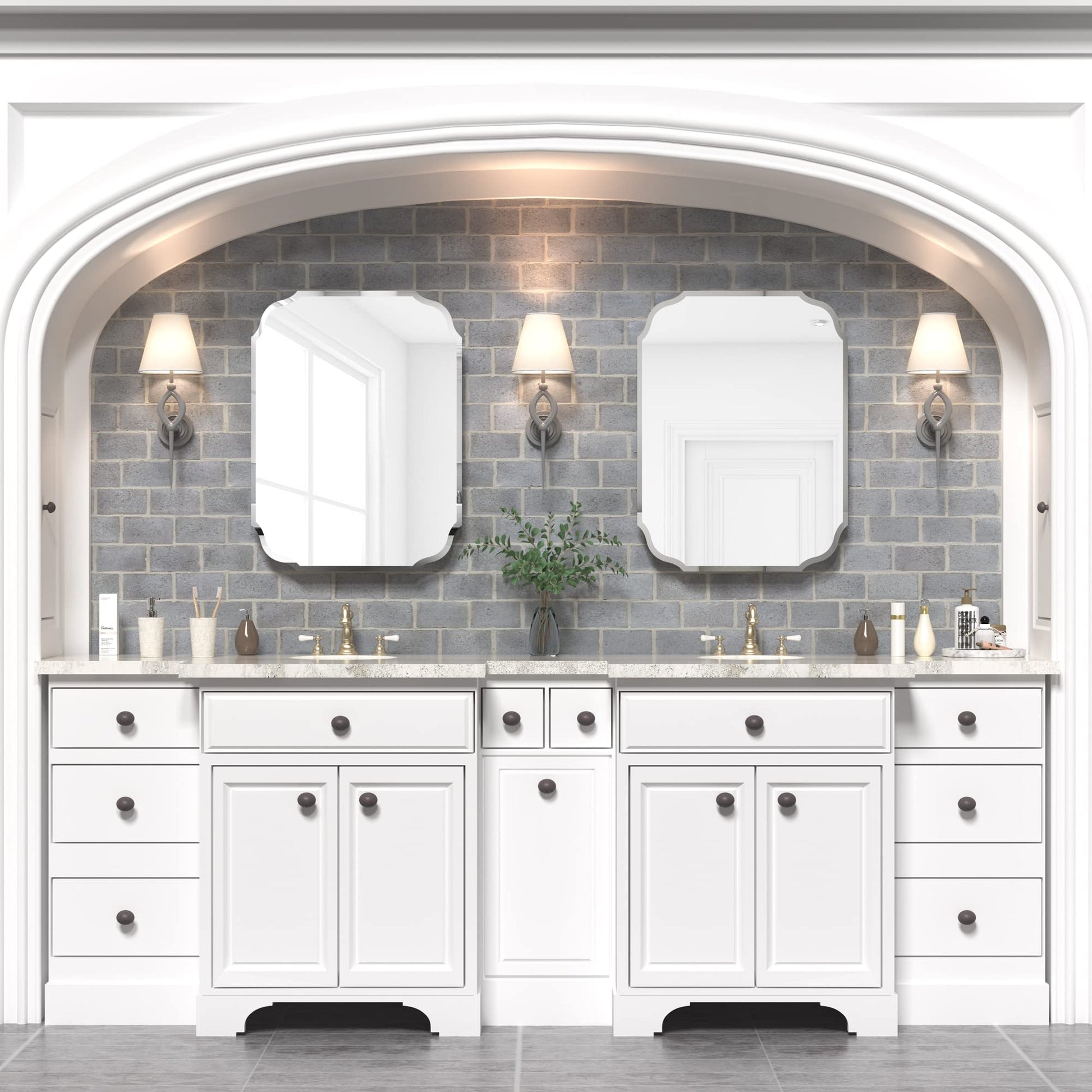 - Beveled Edge design is both simple and sophisticated.A floating, frameless design with our solid core wood backing for reinforcement and stability. The bathroom mirror not easily deformed and bent