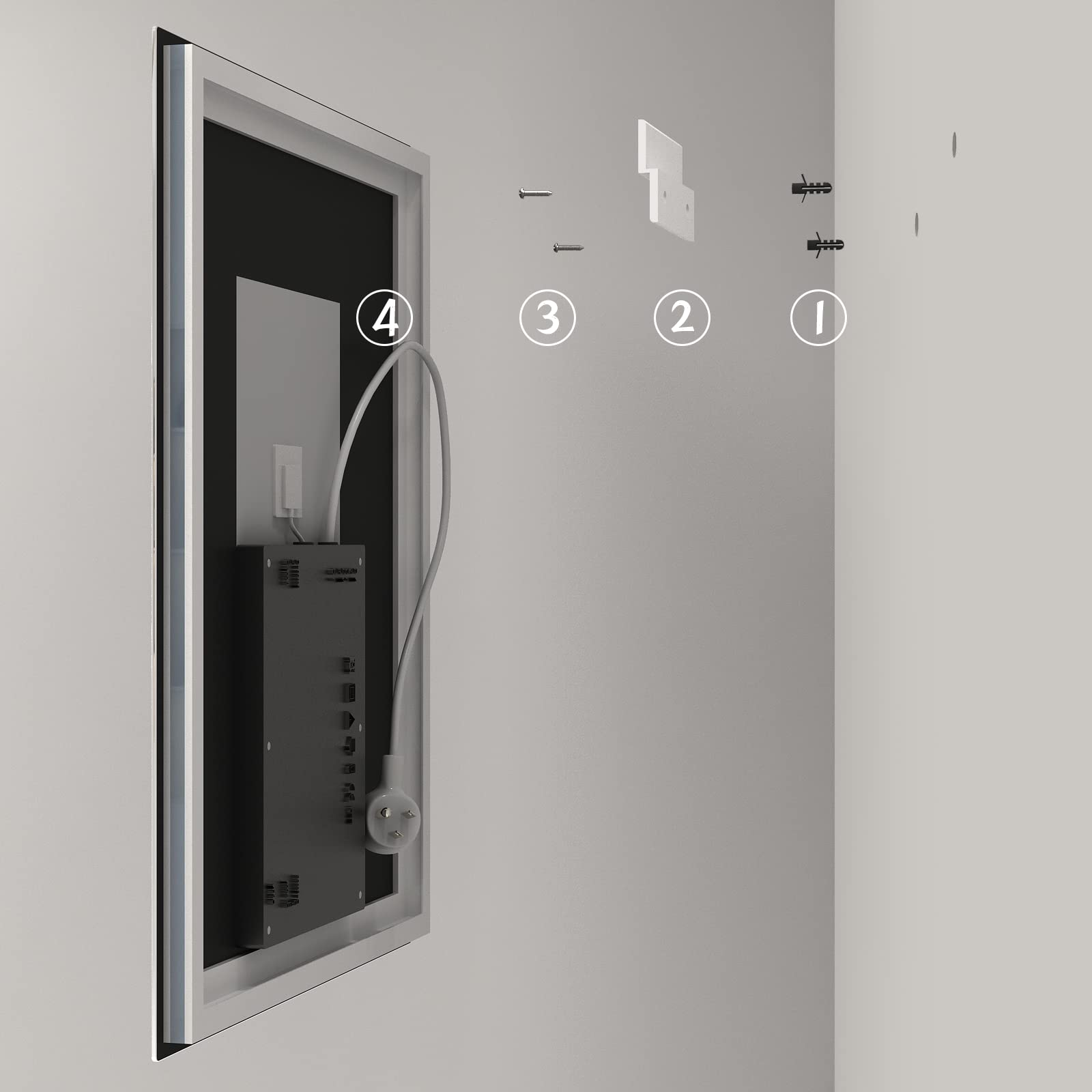 - GOLOMO bathroom mirror with lights supports two power modes. It can be powered by plug in or hardwired by wall switch. Hardwired installation is better to be done by professional electrician. Each pack of led mirror includes brackets and screws. The mirror can be hung horizontally or vertically.
