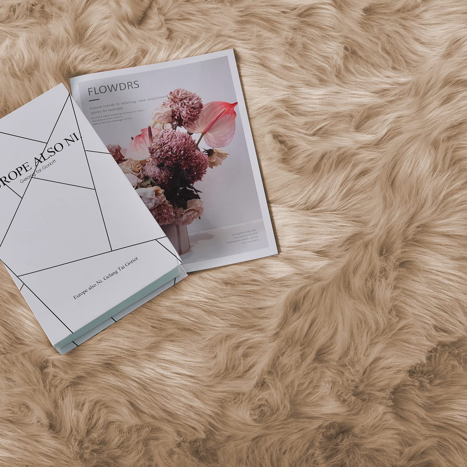 Goolela Area Rugs 8x10 Living Room Rugs Light Brown Beige Rug Washable Faux Fur Rug Fluffy Shag Rug Plush Rug Fuzzy Shaggy Rug for Large Bedroom Rug Home Decor Rectangle