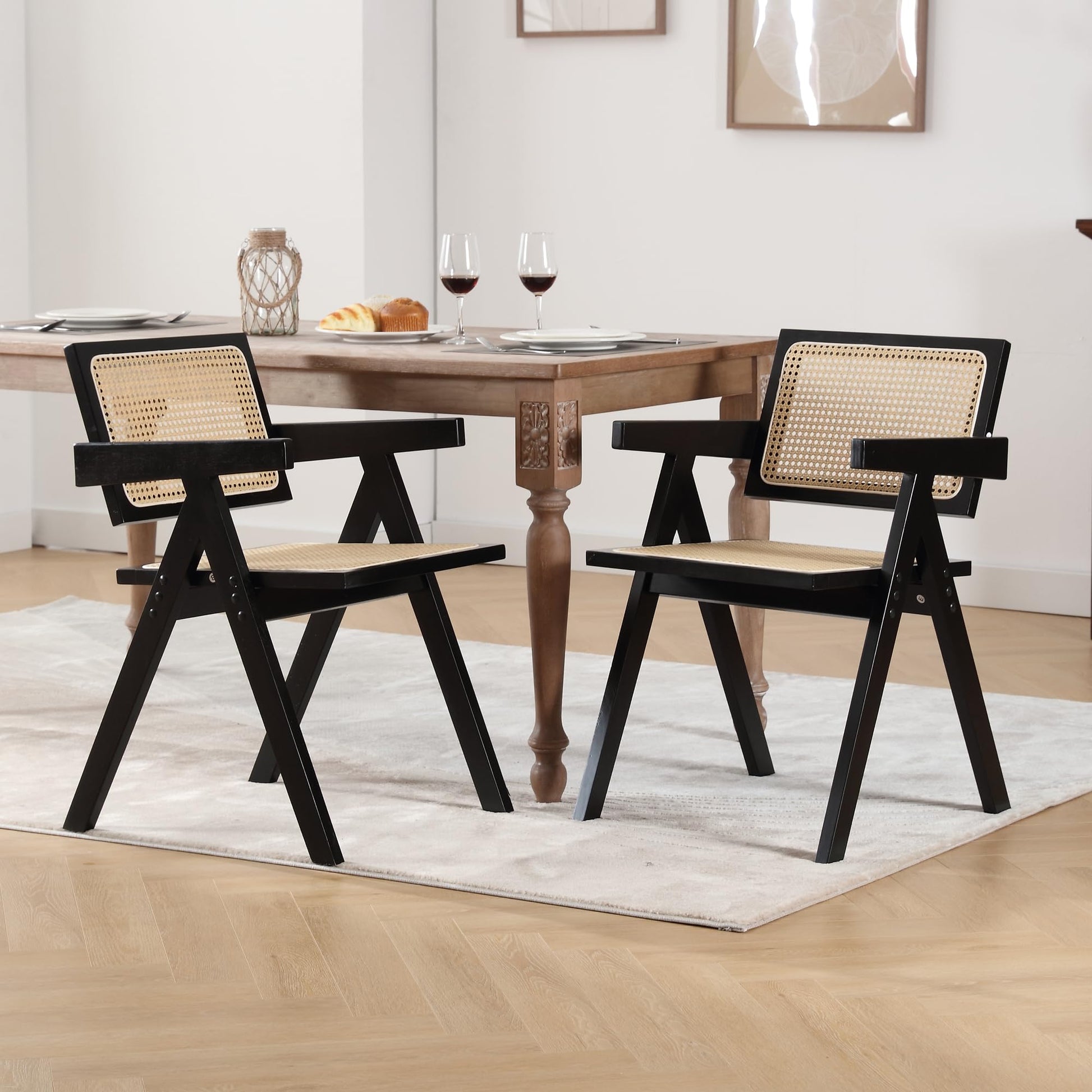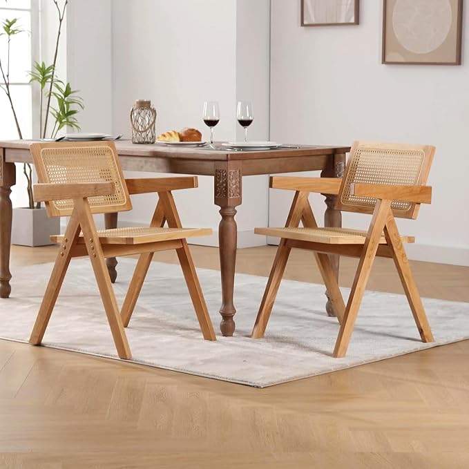 Rattan Dining Chairs Set of 2, Farmhouse Natural Dining Room Chairs