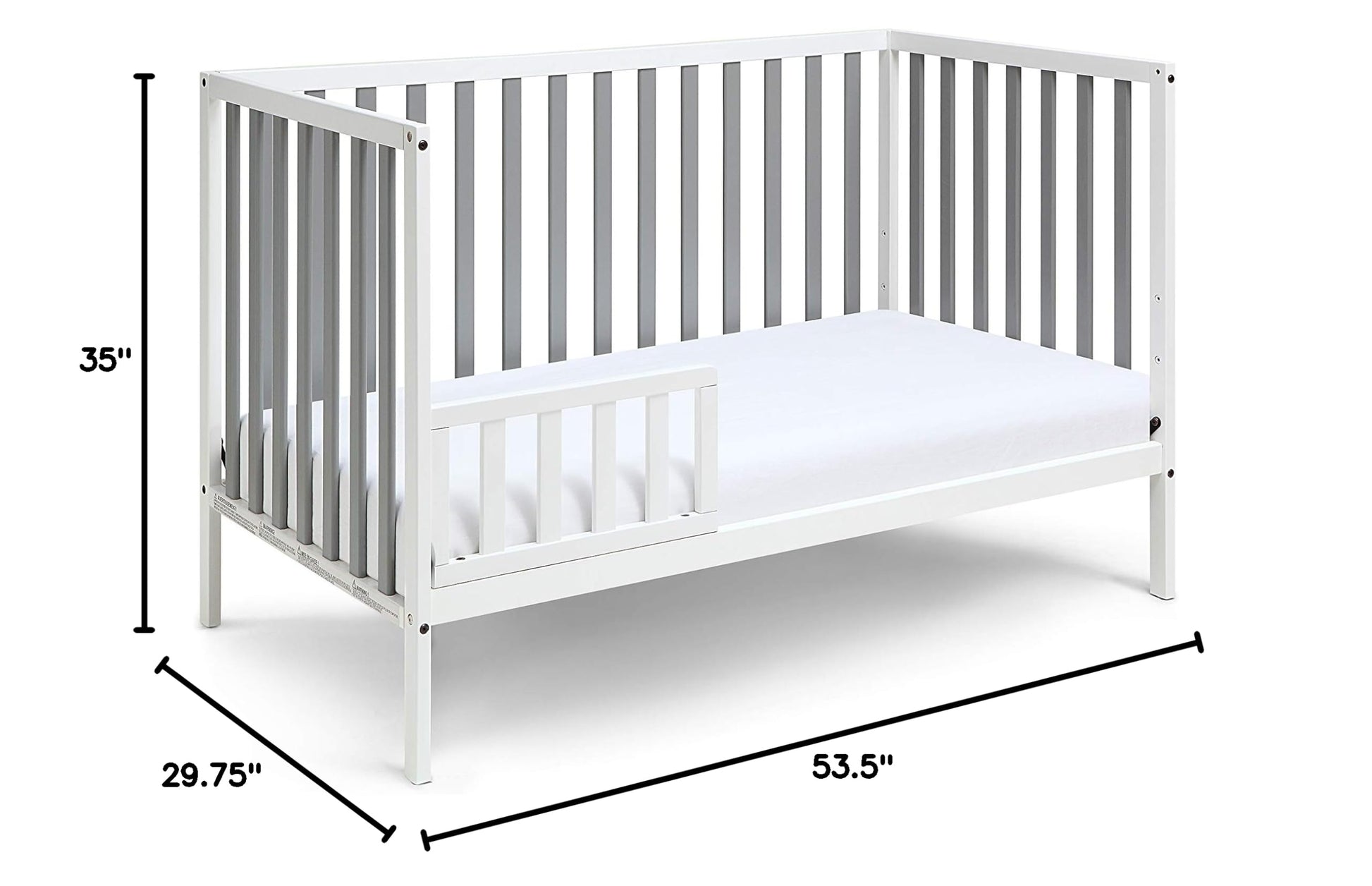 - 3-in-1 Convertible Crib: Converts from baby crib to toddler bed or daybed; Modern nursery design with iconic 2-tone style; Assembly required