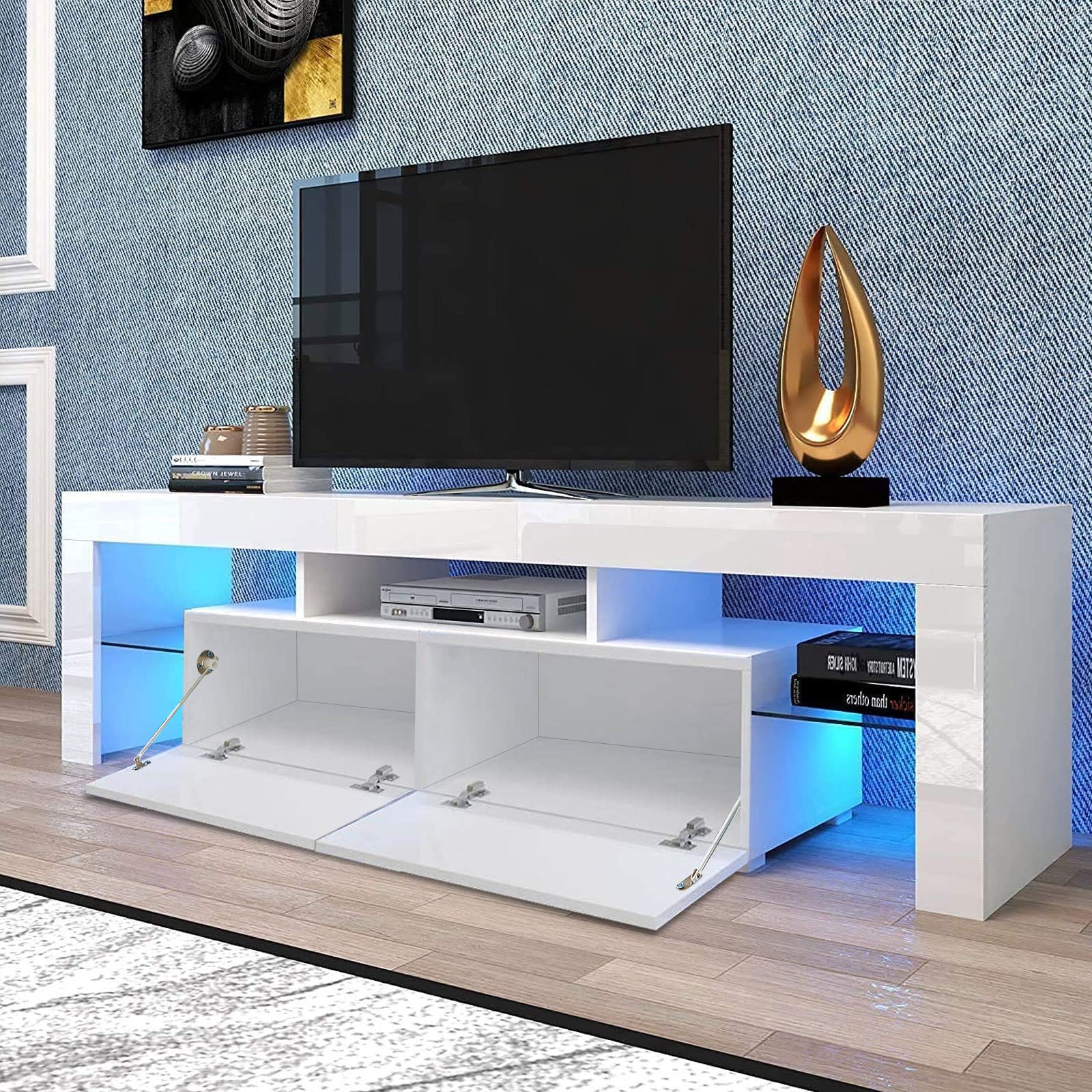 - High gloss finish with simple white lines makes the TV table look great in different home decor styles, like modern, mid century, farmhouse, rustic, retro, industrial decor and more. Fit well for your bedroom, living room and lounge room, etc