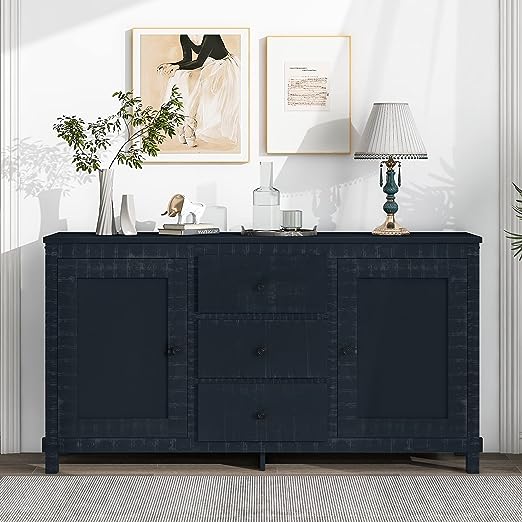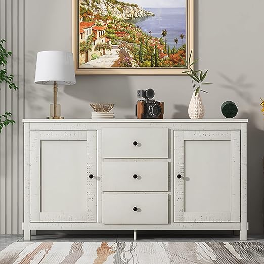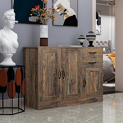 - Buffet Sideboard & Storage Cabinet: This sideboard table features 4 doors and internal adjustable shelves which provide more space for storage. The farmhouse's distressed finish and stylish design add a sense of elegance