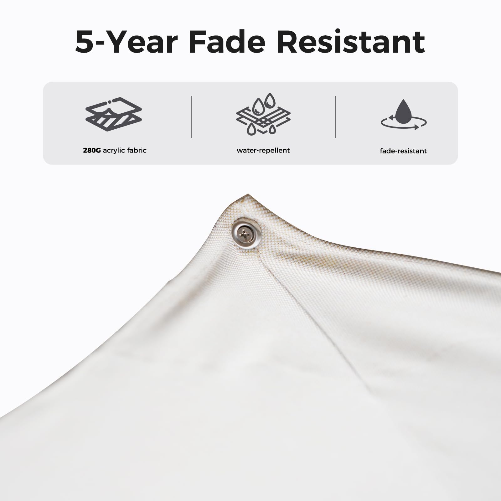 - Premium Canopy: High-quality beige 280g acrylic fabric with UPF50+ anti-UV coating provides 5-year fade-resistant and water-repellant properties. This 10x10 FT double-sided patio umbrella provides wide coverage of approximately 200 square feet from the sun which is ideal for your family and customers at the backyard, pool, or shop.