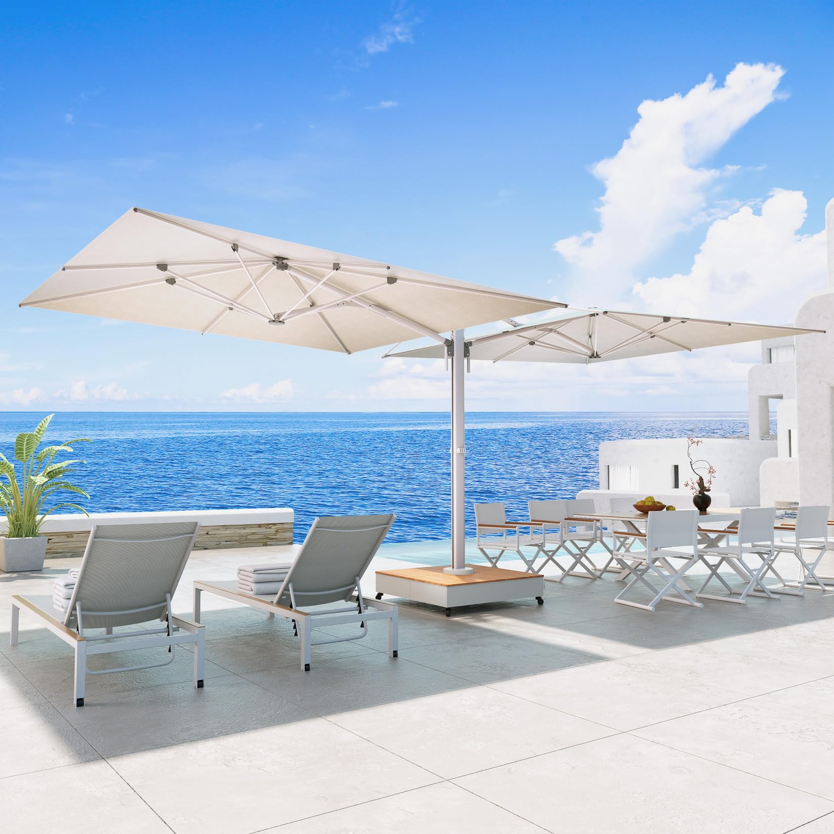 Large Patio Umbrella with Base, Double-Sided Outdoor Cantilever Aluminum Umbrella
