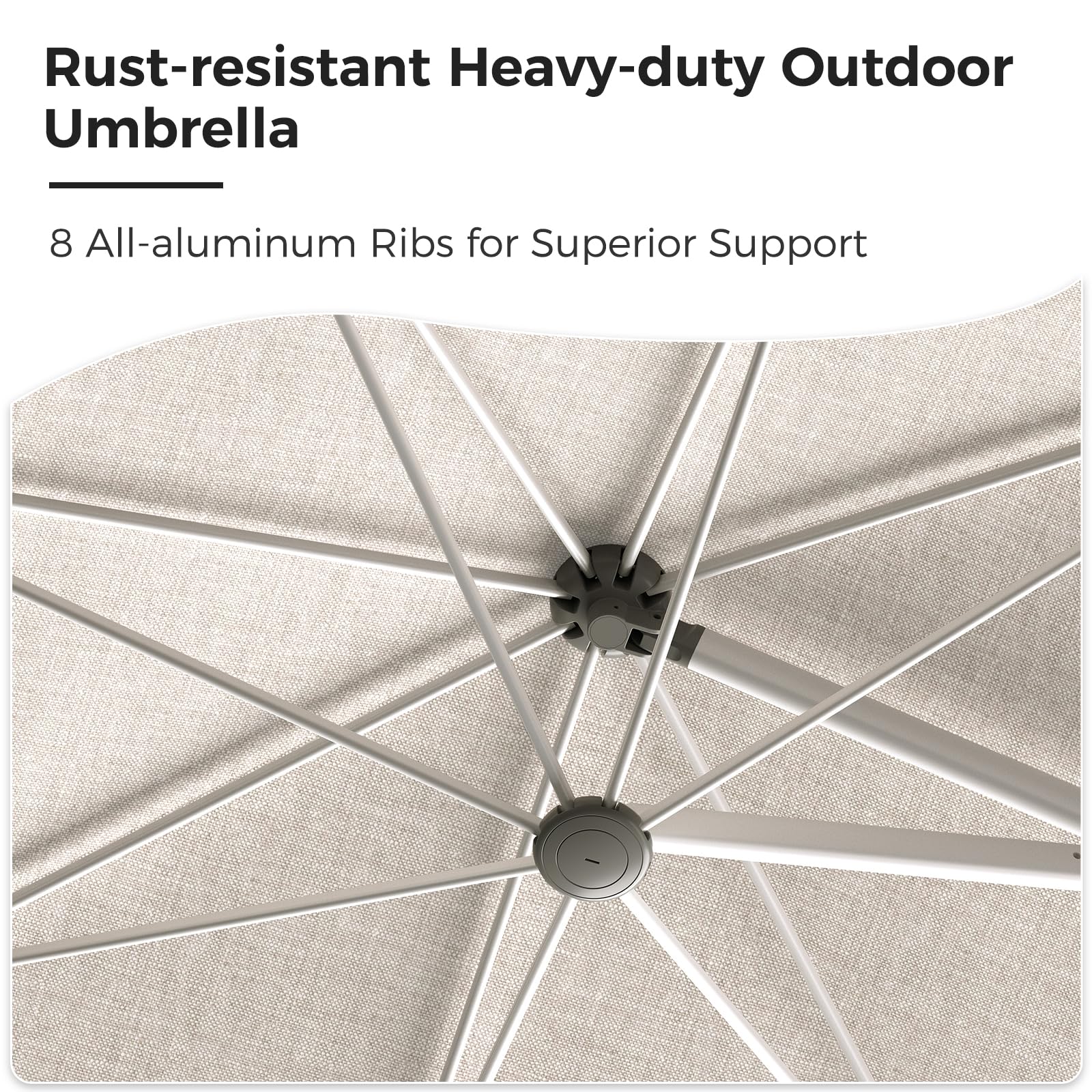 - Uncompromising Durability: The Large offset umbrella is made of a powder-coated aluminum frame and 8 heavy-duty aluminum ribs. This cantilever umbrella surface has anti-oxidation spray paint. Make the umbrella rust-proof and maintain a long period of life.