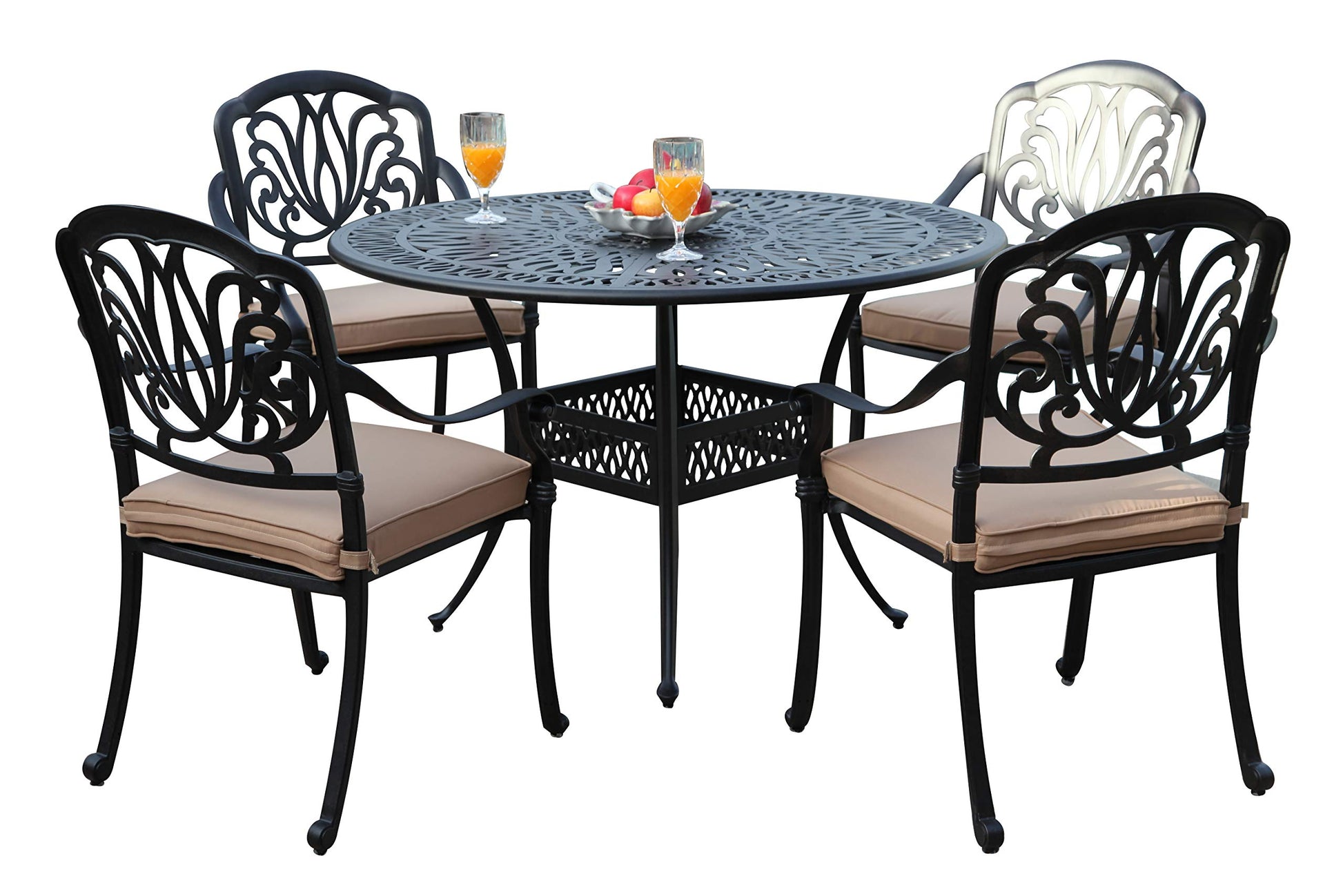 Patio Elisabeth Collection Cast Aluminum 5 Piece Rosedown Dining Set with 4 Arm Chairs