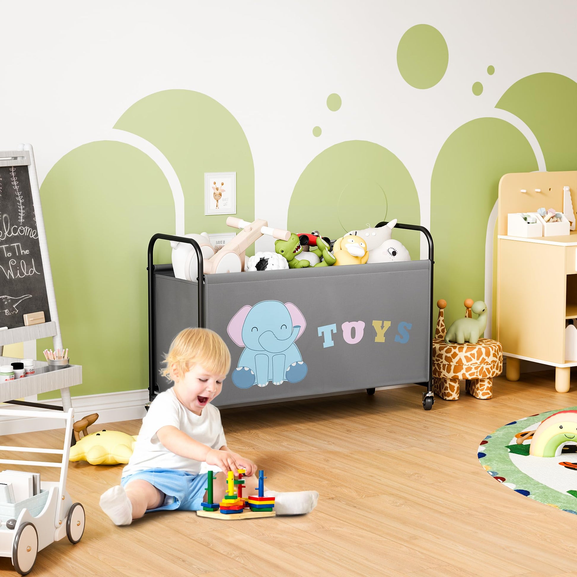 - Safe & Cute Design for Kids: Cute elephant toy box is crafted from odorless and safe materials with a smooth appearance. It not only protects children from harmful chemicals, but also eliminates the risk of injury to little fingers getting caught, unlike toy boxes with lids.