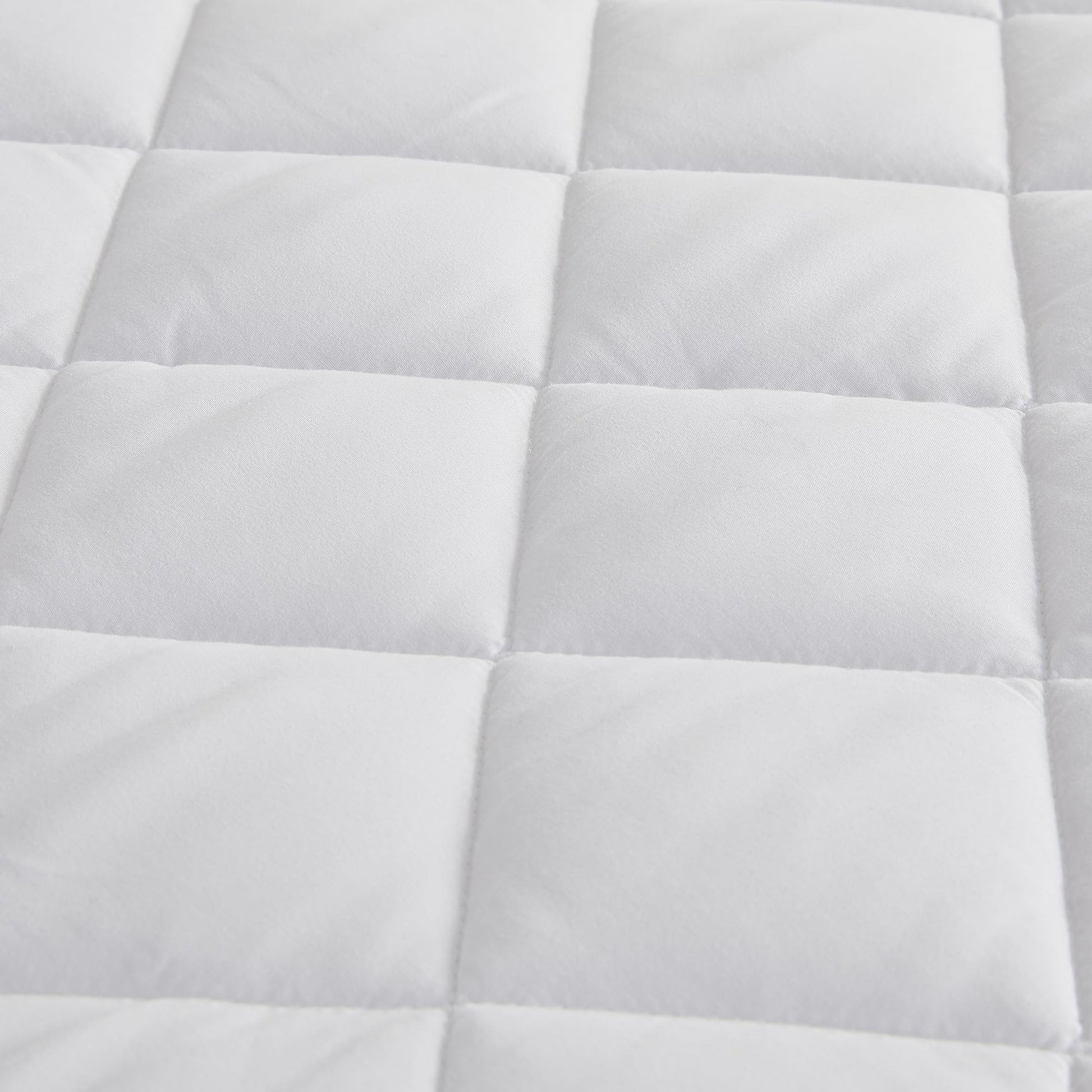 - Quilted Mattress Pad: Add another layer of extra comfort and protection to your mattress. The durable box stitching ensures the down-alternative fill stays in place.