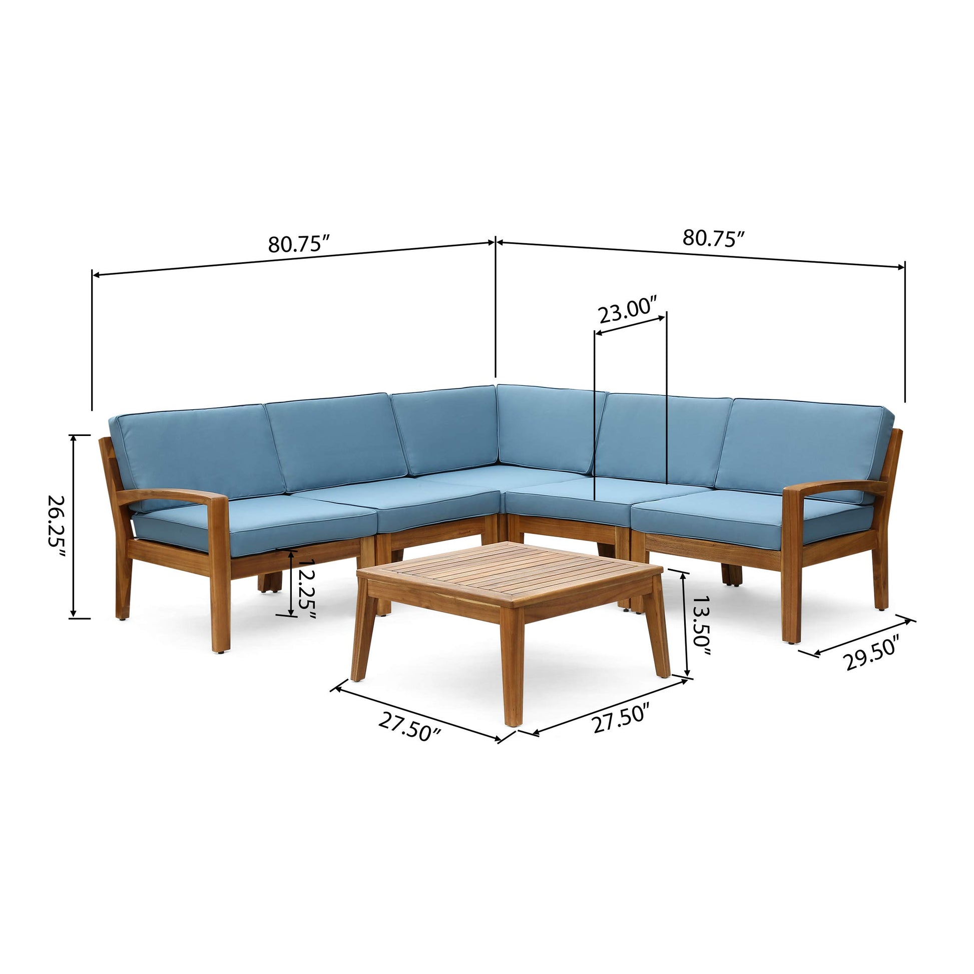 Roy Outdoor Acacia Wood 5 Seater Sofa Set with Coffee Table