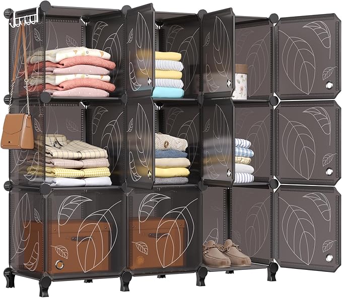 Closet Organizer, 9 Cube Storage Organizer with Doors, Portable Closet Storage Shelves,
