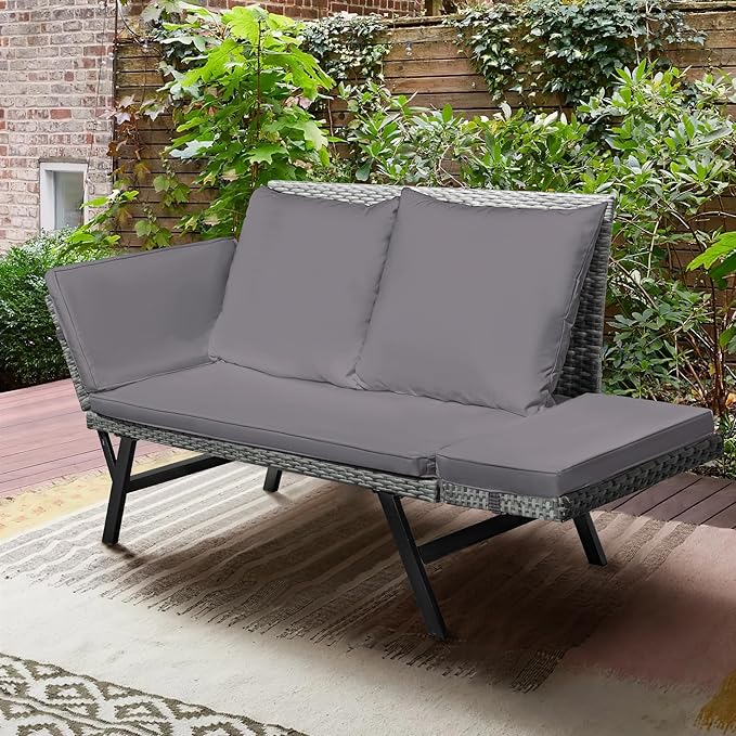 Outdoor Sofa, Woven Rattan Patio Furniture, Convertible Daybed or Double Chair