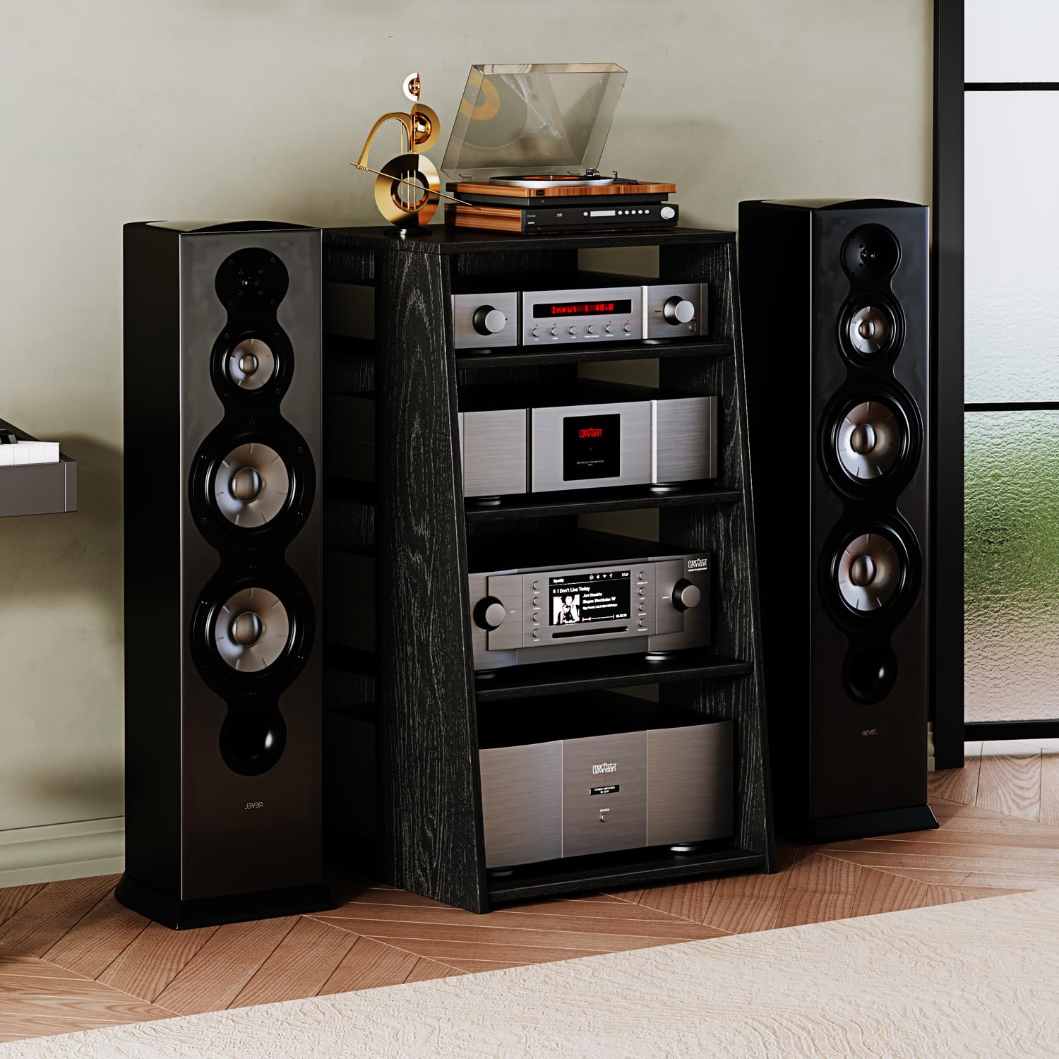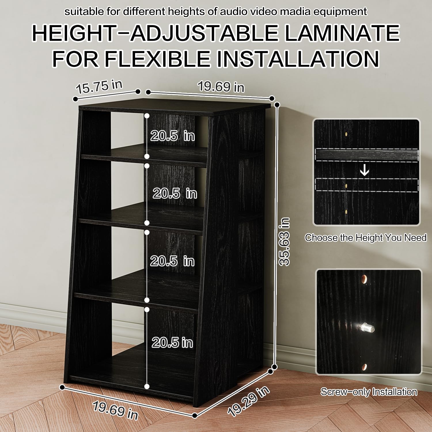 - The size of this 4-layer media shelf is 23.62 "x 19.69" x 35.83 "(length x width x height), the ventilation design on the back of the audio rack tower can effectively hide your cables, allowing your TV Cabinet to fully dissipate heat without worrying about audio equipment.