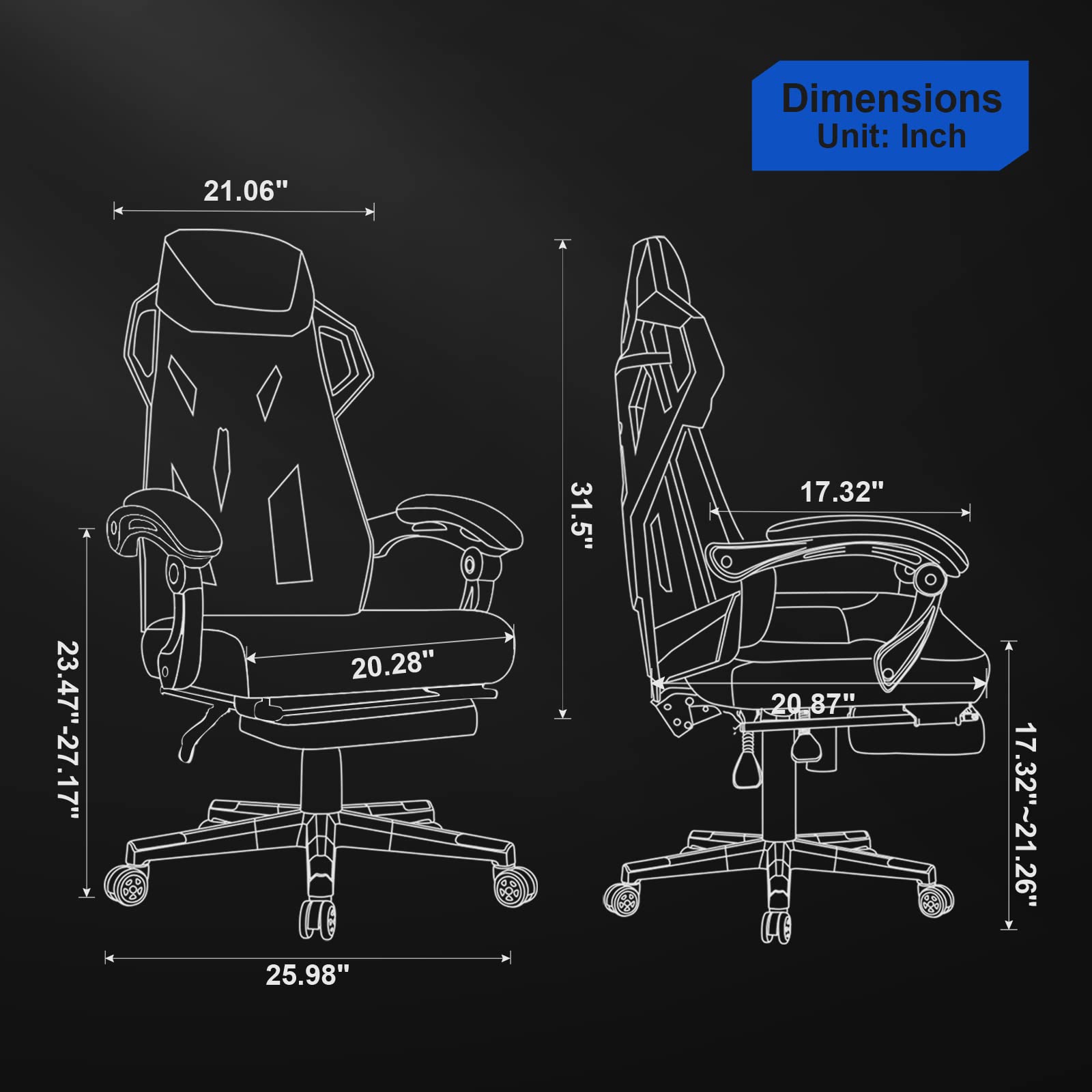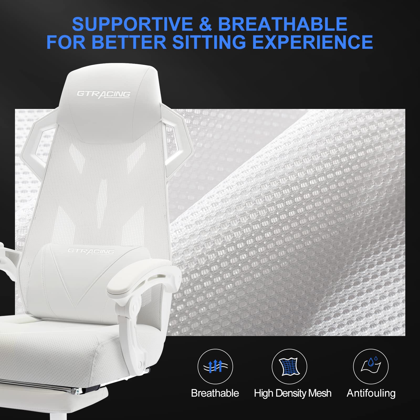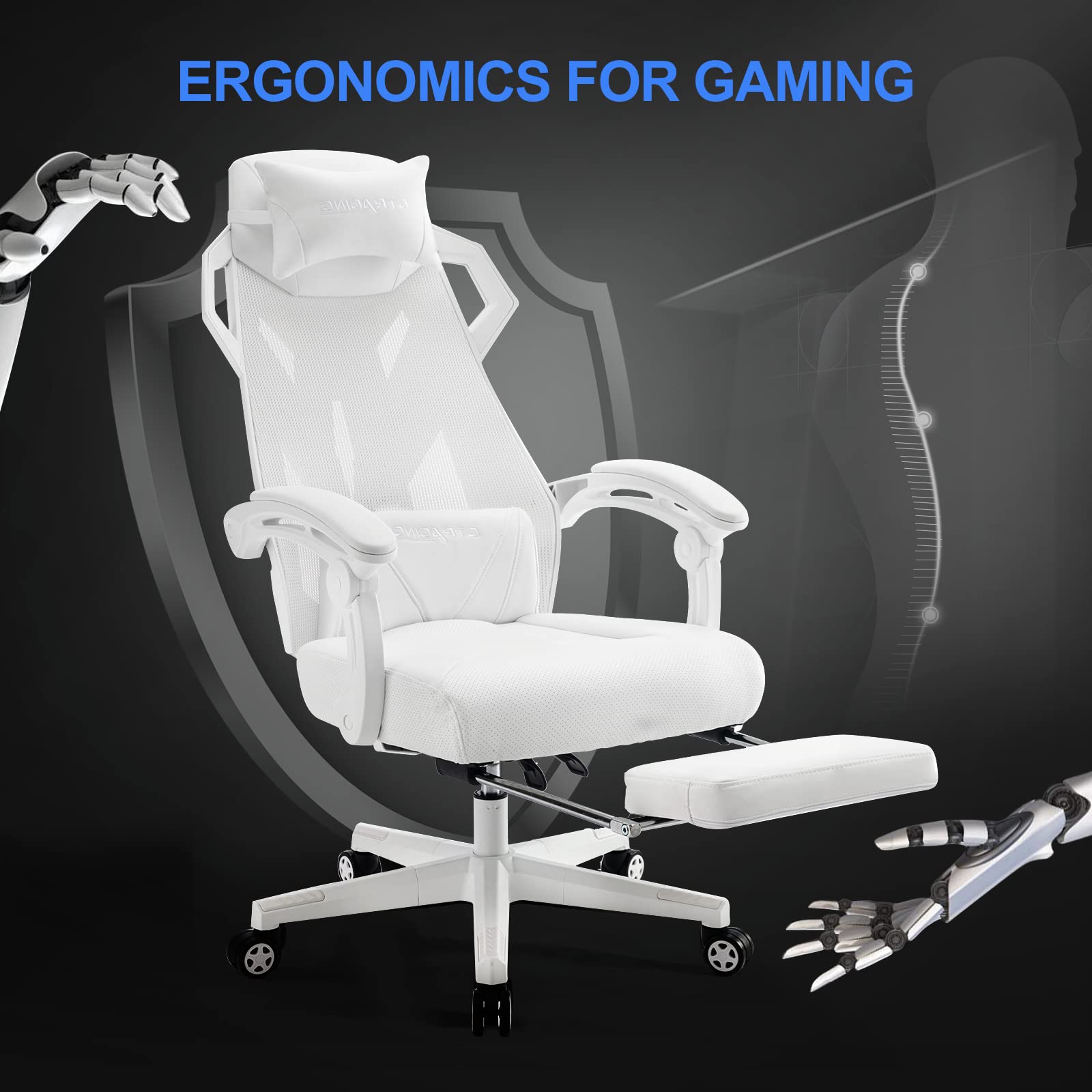 Gaming Chair, Computer Chair with Mesh Back, Ergonomic Gaming Chair with Footrest