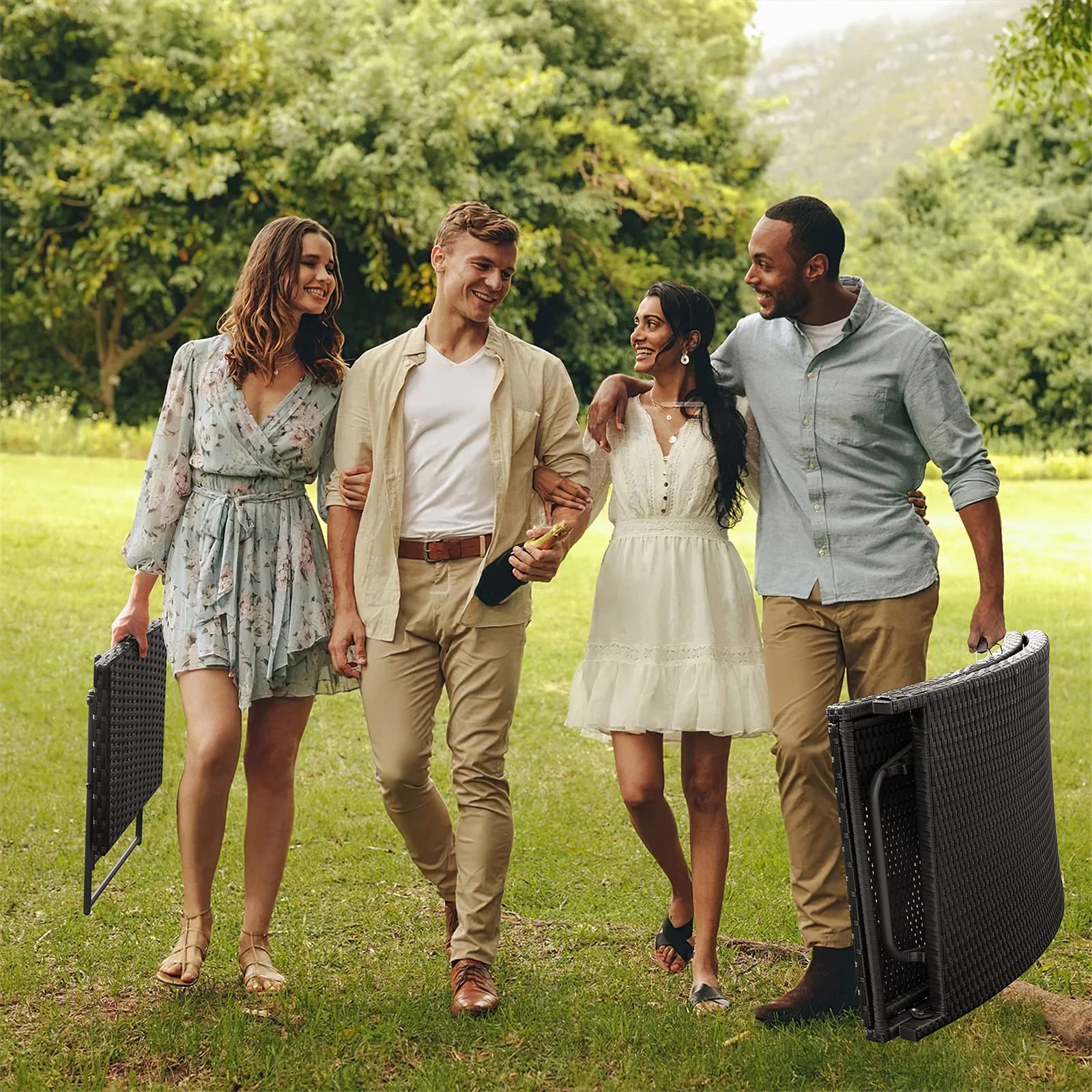 - Foldable Design: The product includes two recliners and a small square table. The recliners and small square table are all foldable. You can put some cold drinks or small cakes on the table. When you have finished using them, you can fold them up and place them in the trunk of the car or lean against the corner of the wall, and then unfold them when you use them. The folding handle and locking system of the recliner also make the movement more convenient and safer.