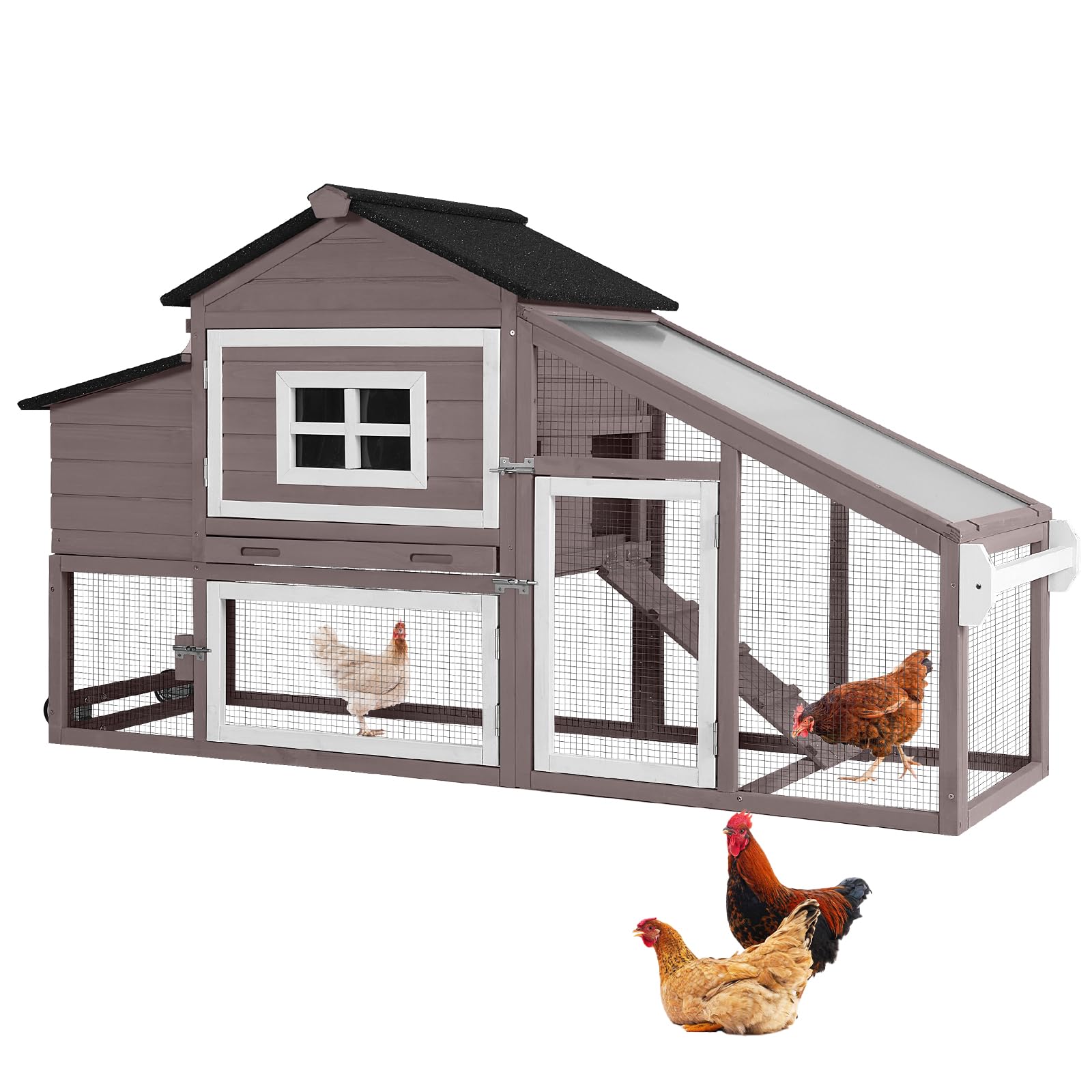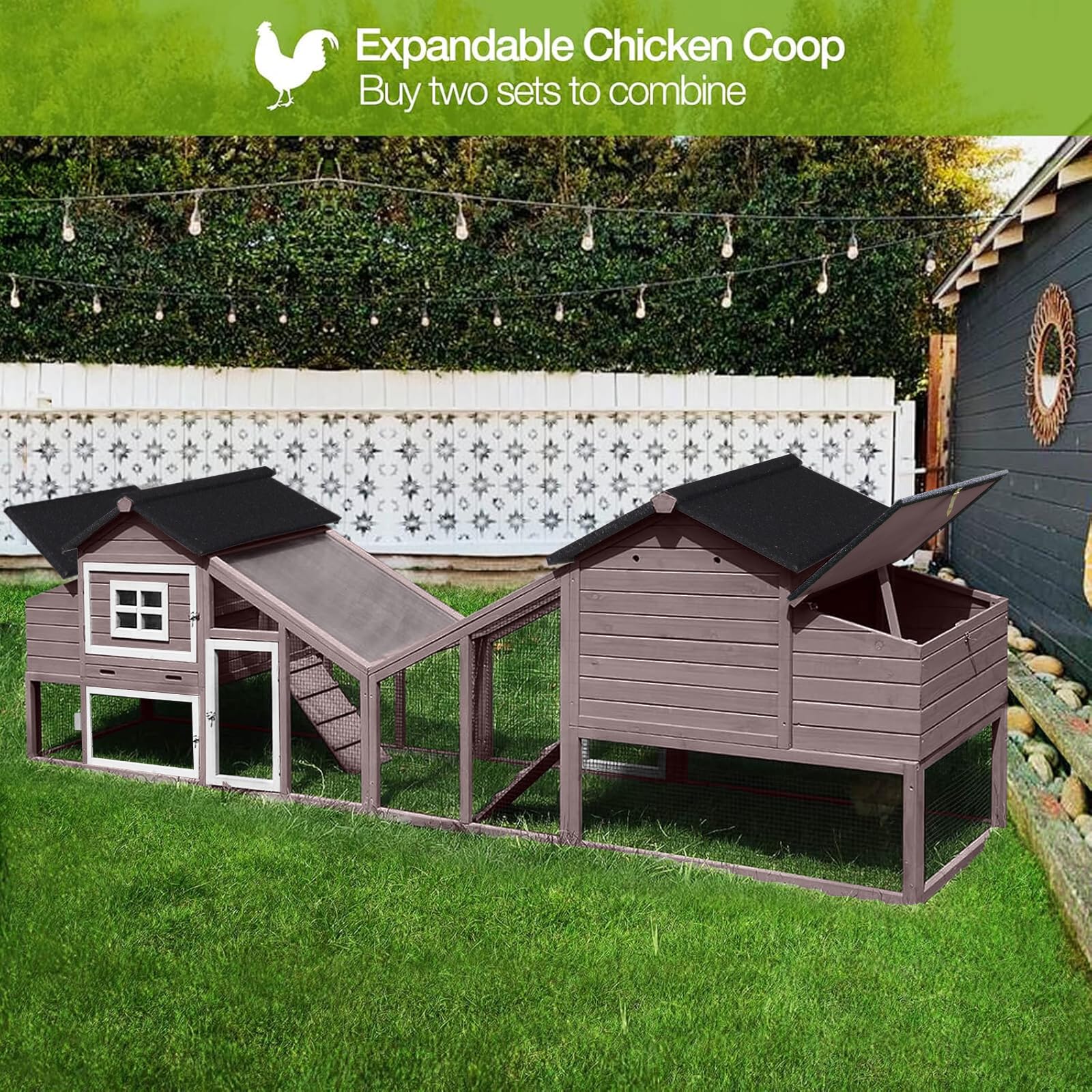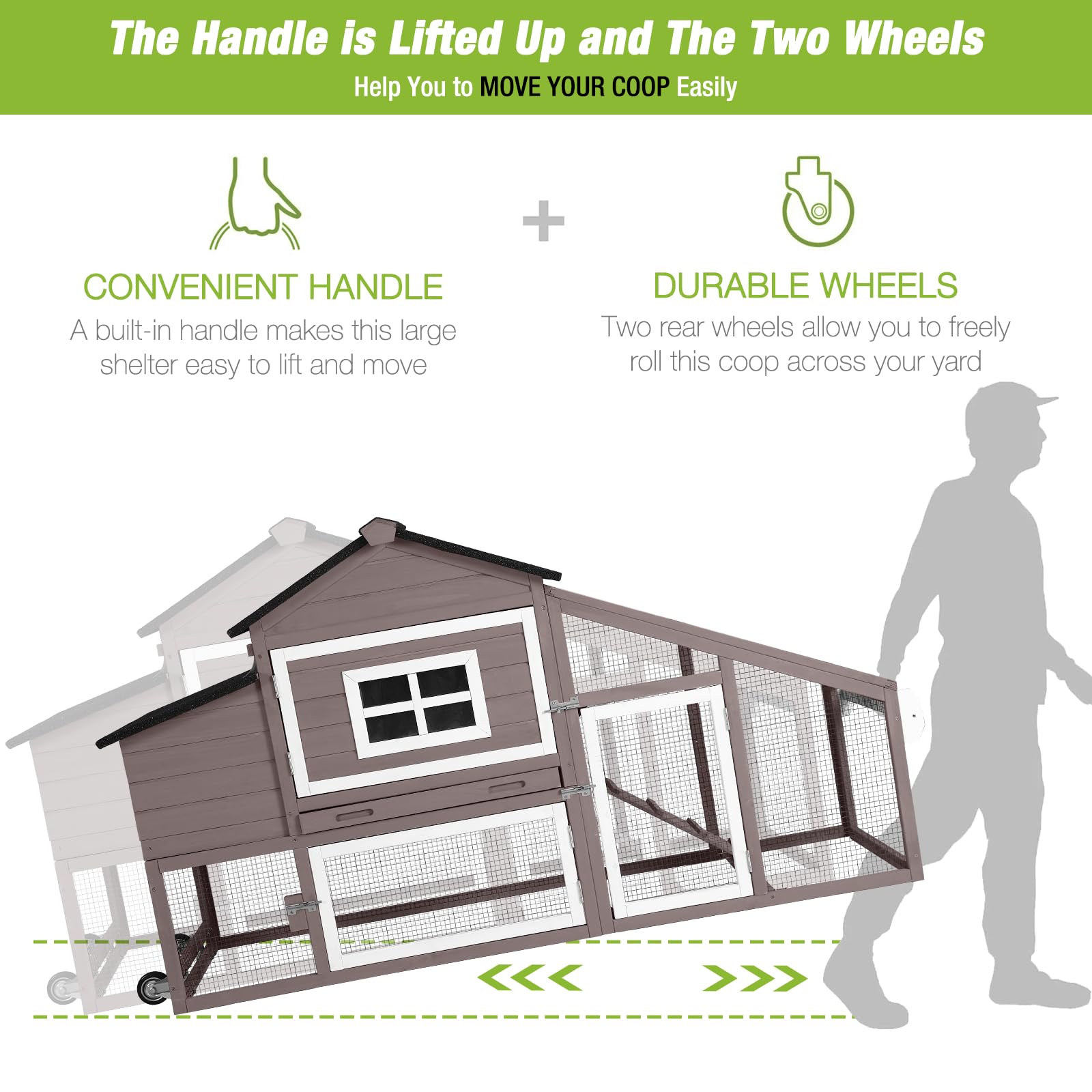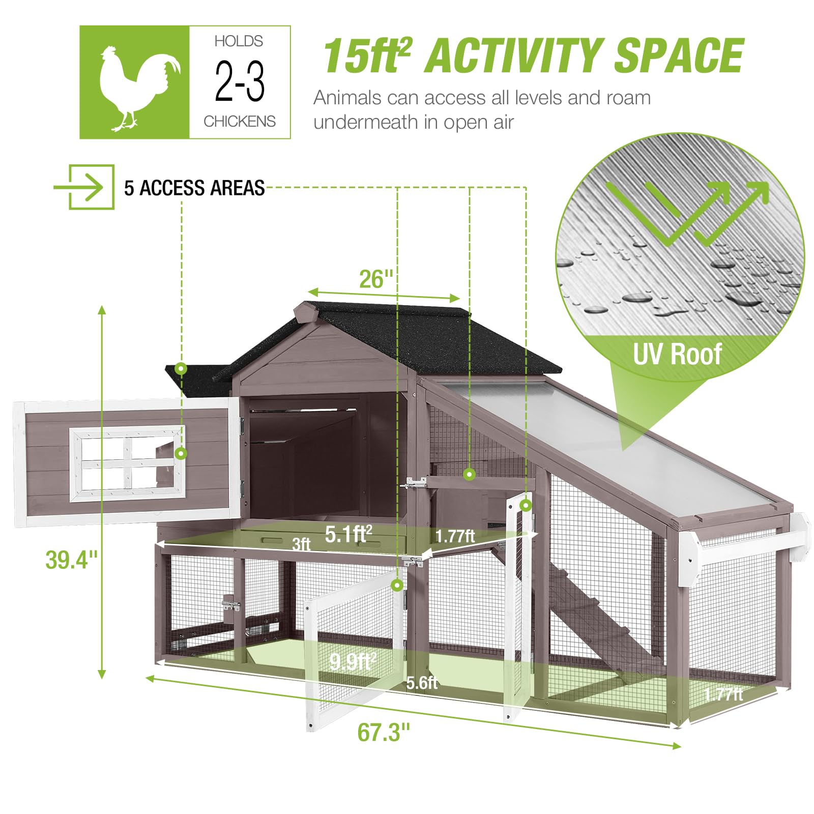 - 【Combination Design】Buy TWO Coops to extending super larger space.Easy combination by clear assemble manual,pre-drill screw holes,and labeled panels.Overall size 69”(L) x 26”(W) x 39.4”(H)