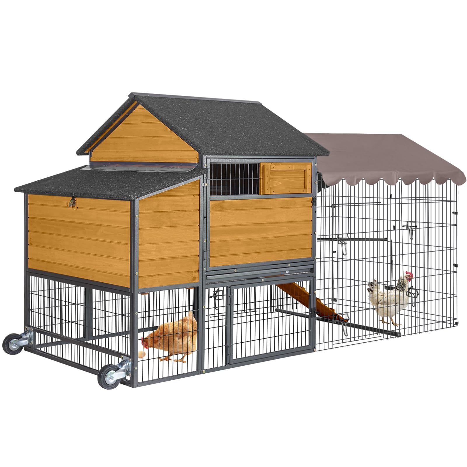 - Movable Design: 85" chicken coop holds between 6-8 chickens. 2 large metal wheels with long design handle makes this backyard chicken house easily movable..