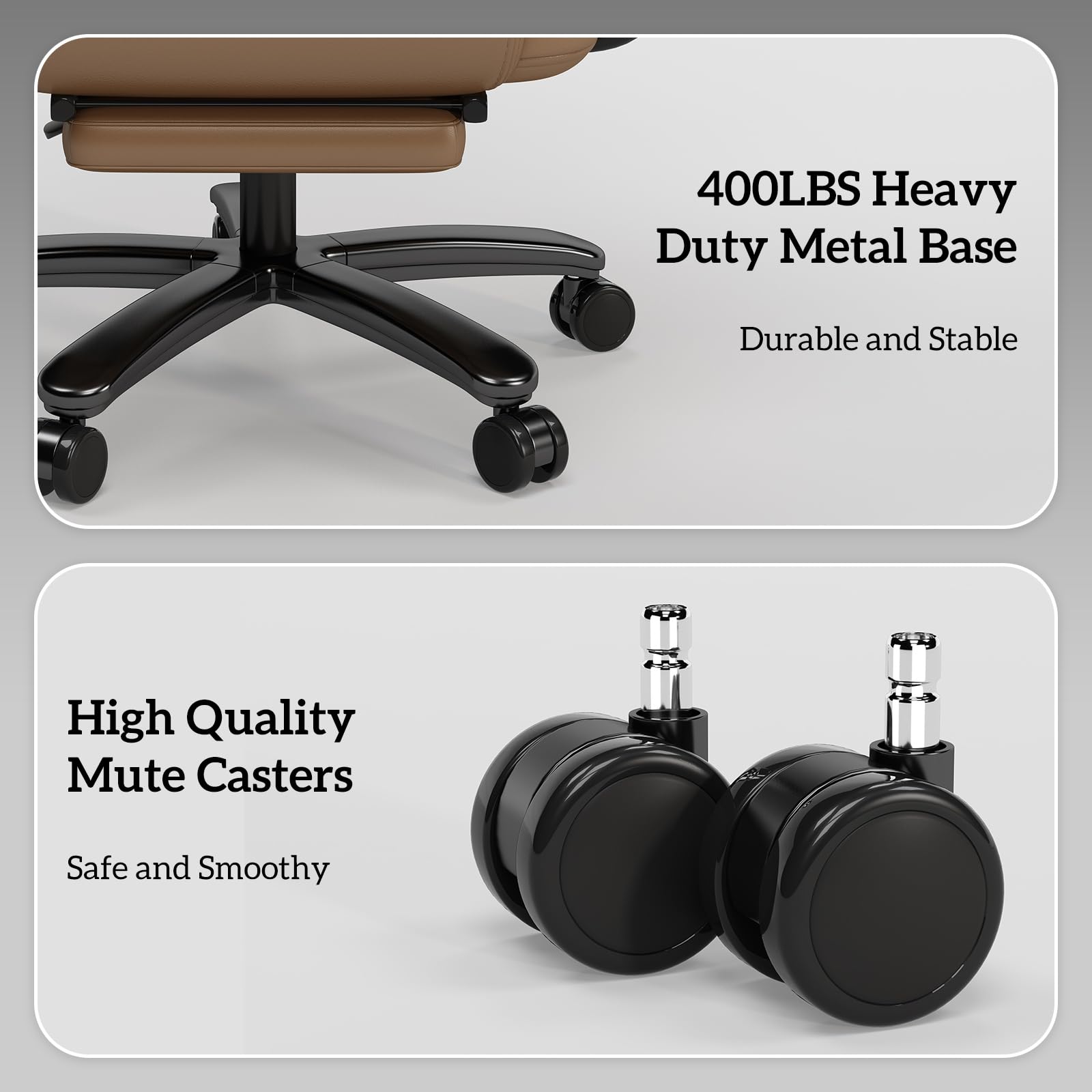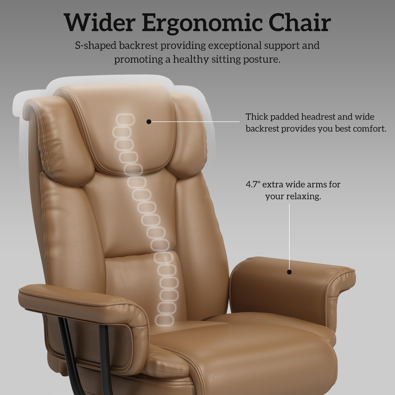 Big and Tall Office Chair 400LBS with Wide Seat and Arms, 160° Reclining Office Chair