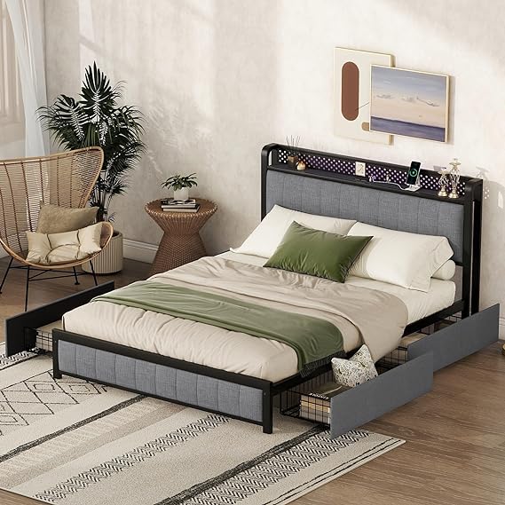 - Integrated Charging Ports Headboard Provides More Convenience The multi-functional headboard of this full size platform is built in 2 standard plug Outlets & 2 USB ports, that will be very convenient to charge mobile phone, tablet, headphones and other electronic devices within your reach or plug in reading light to easily read while lying in bed.