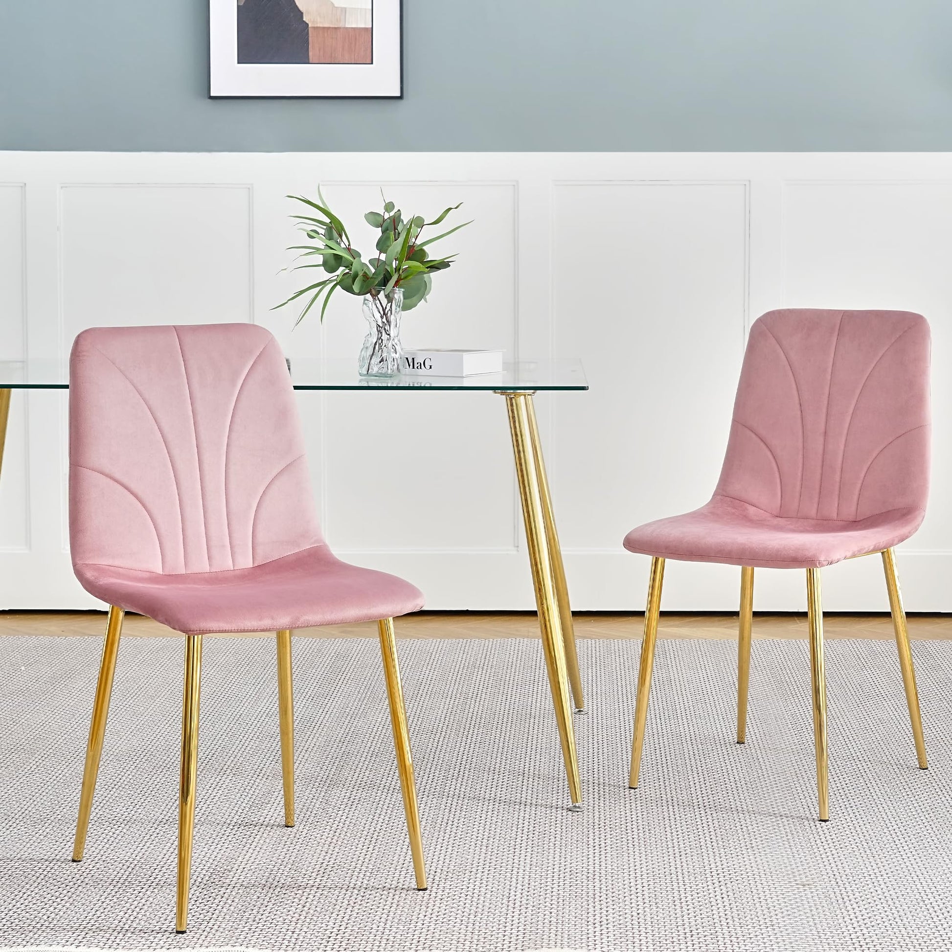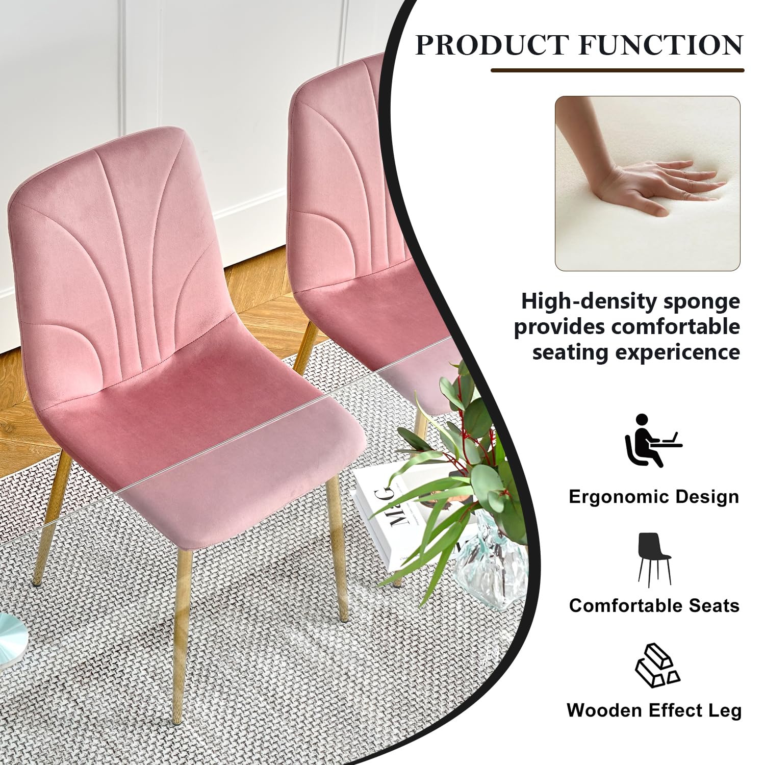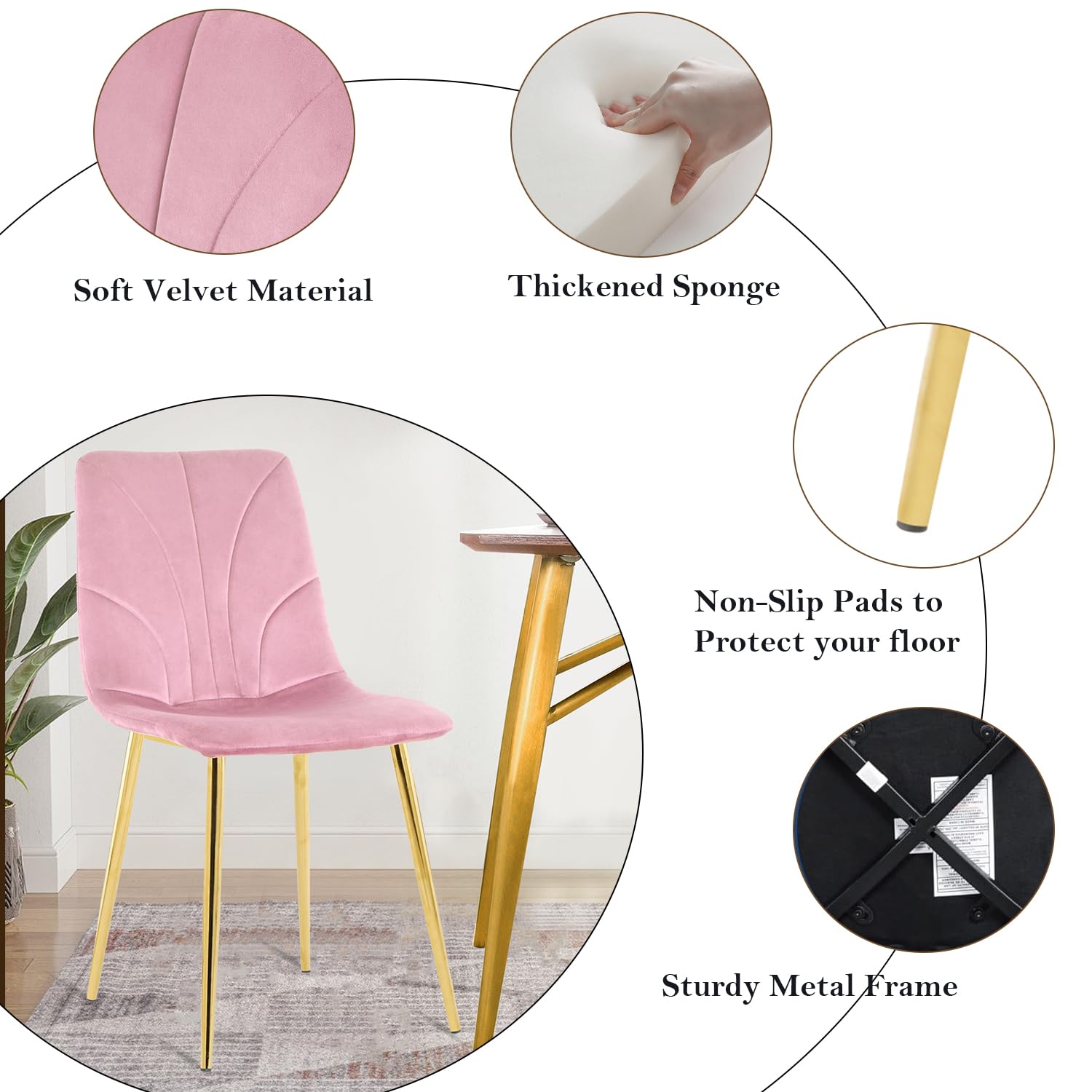 HAIZAO Dining Chairs Set of 4, Modern Kitchen Dining Room Chairs, Velvet Dining Chair Upholstered Cushion Seat and Sturdy Metal Legs, Pink