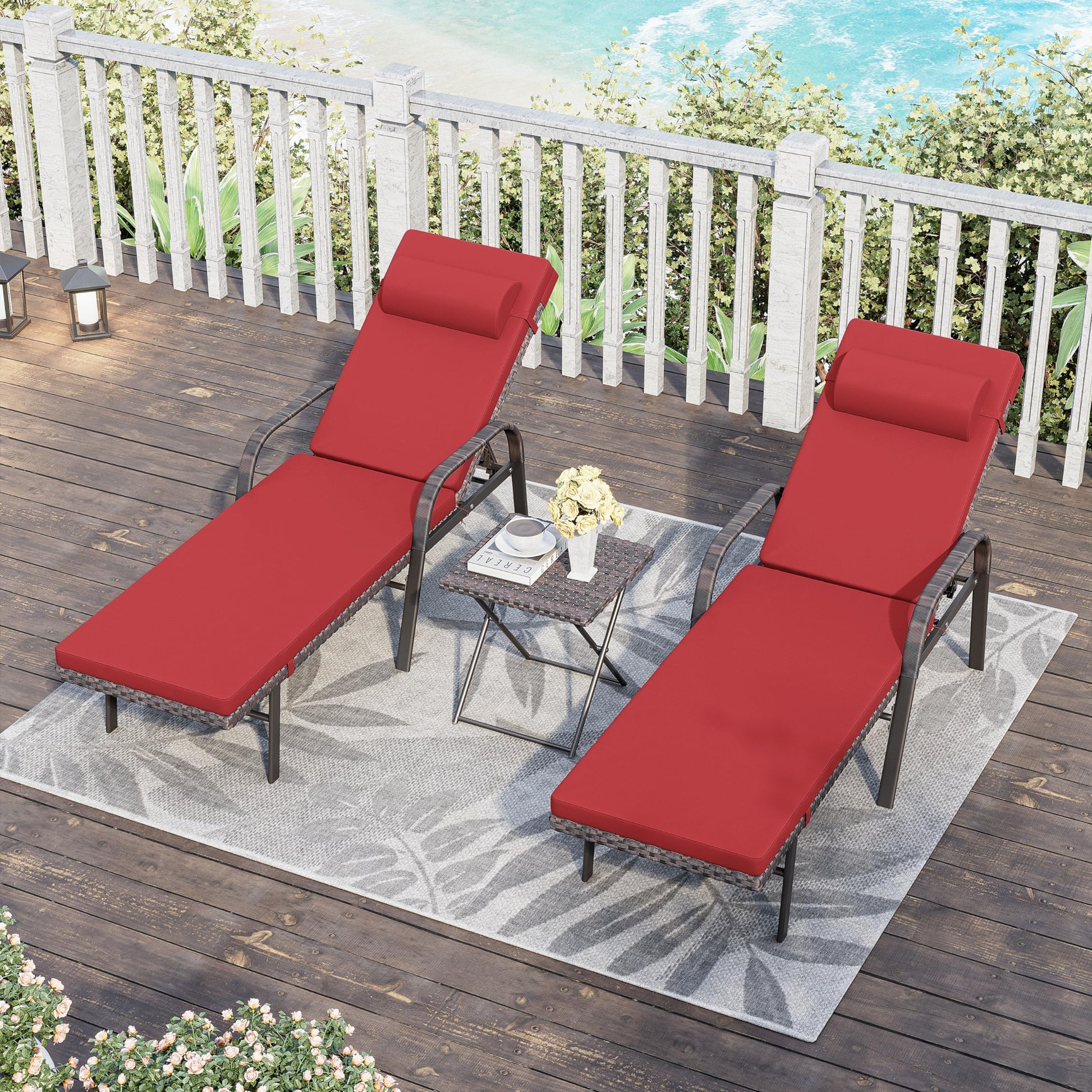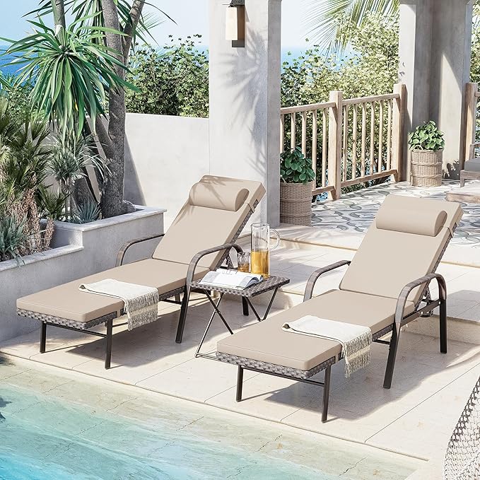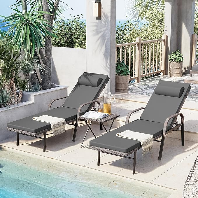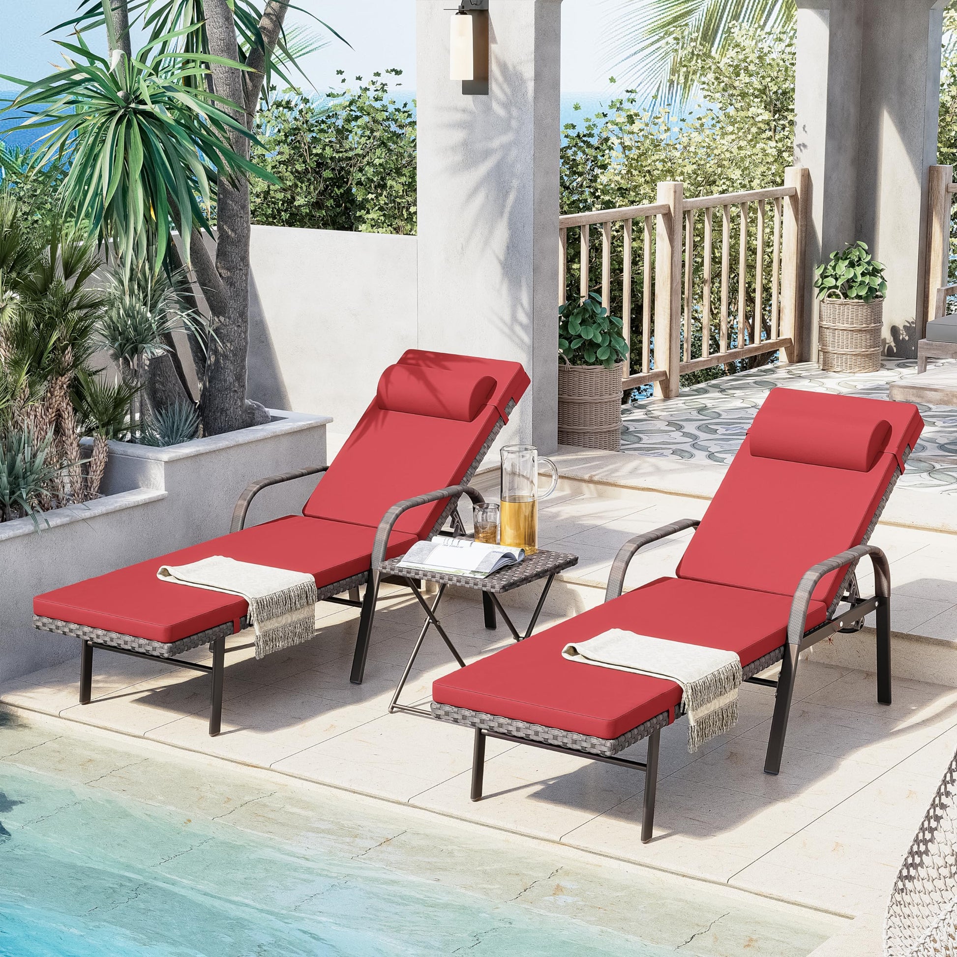 Outdoor Chaise Lounge Chairs 3 Pieces PE Wicker Patio Furniture Set Rattan Beach