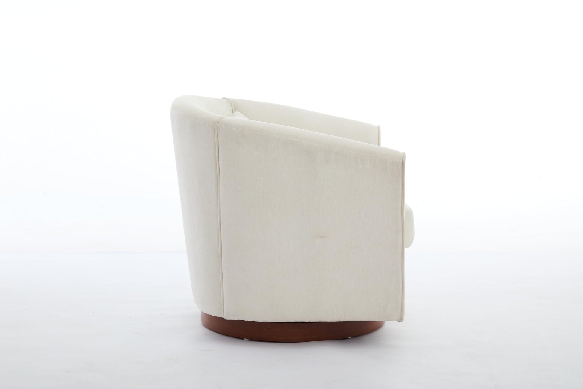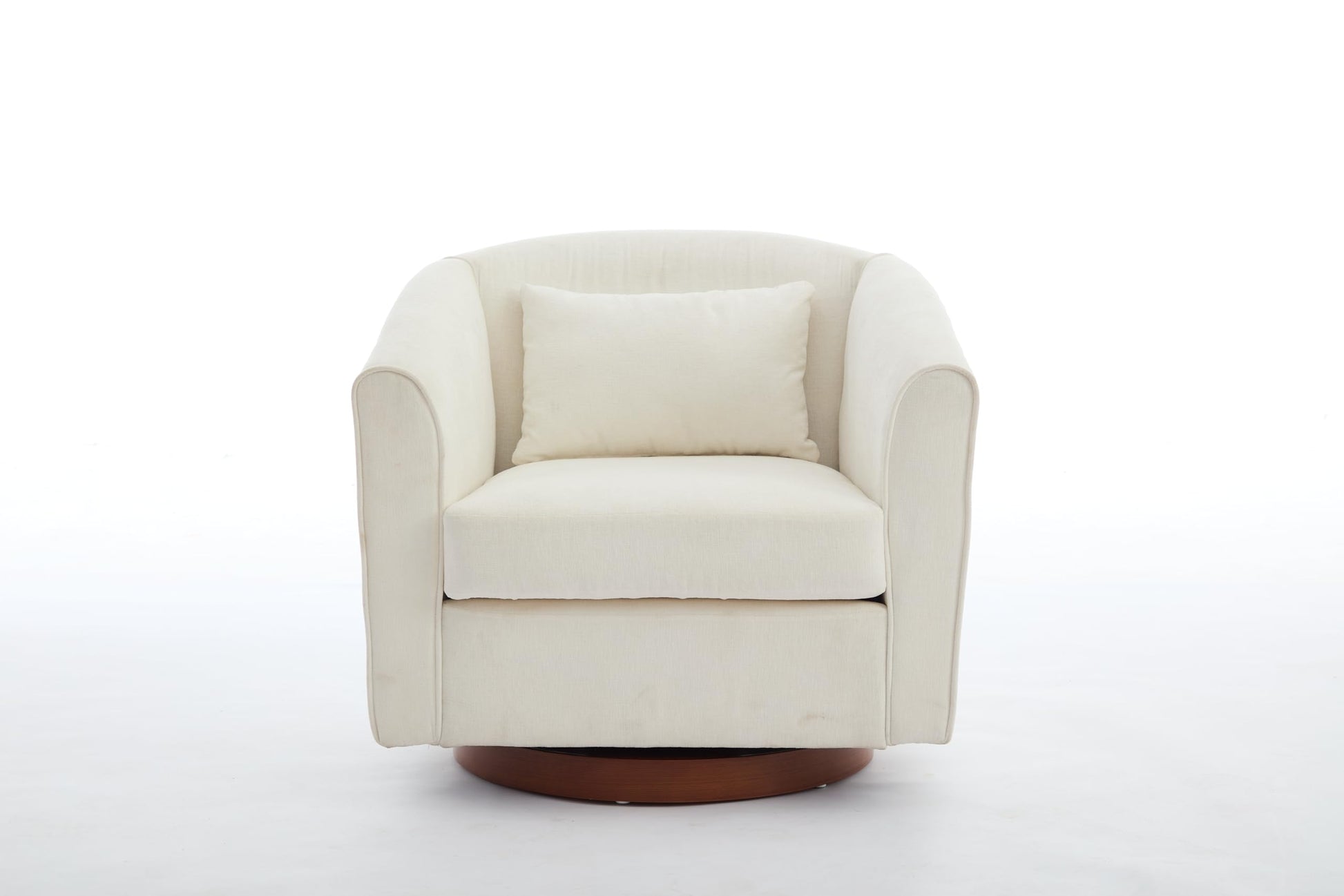 Swivel Accent Chair,Chenille Single Barrel Chairs with Wood Base Side,Comfy Swivel Accent Chair with Wide Upholstered for Living Room Bedroom(White)