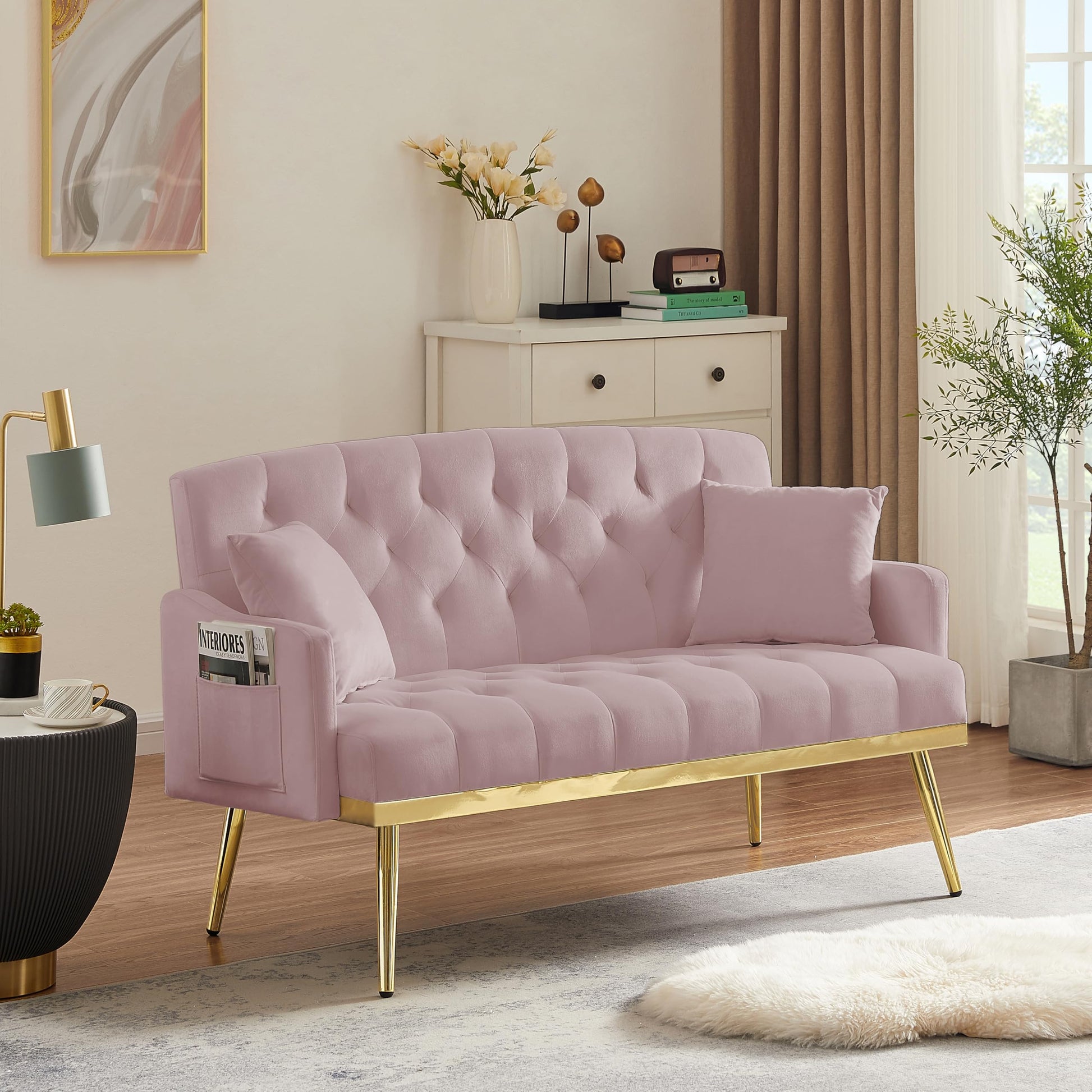 55-Inch Modern Velvet Loveseat Sofa with Gold Metal Legs & Side Pockets