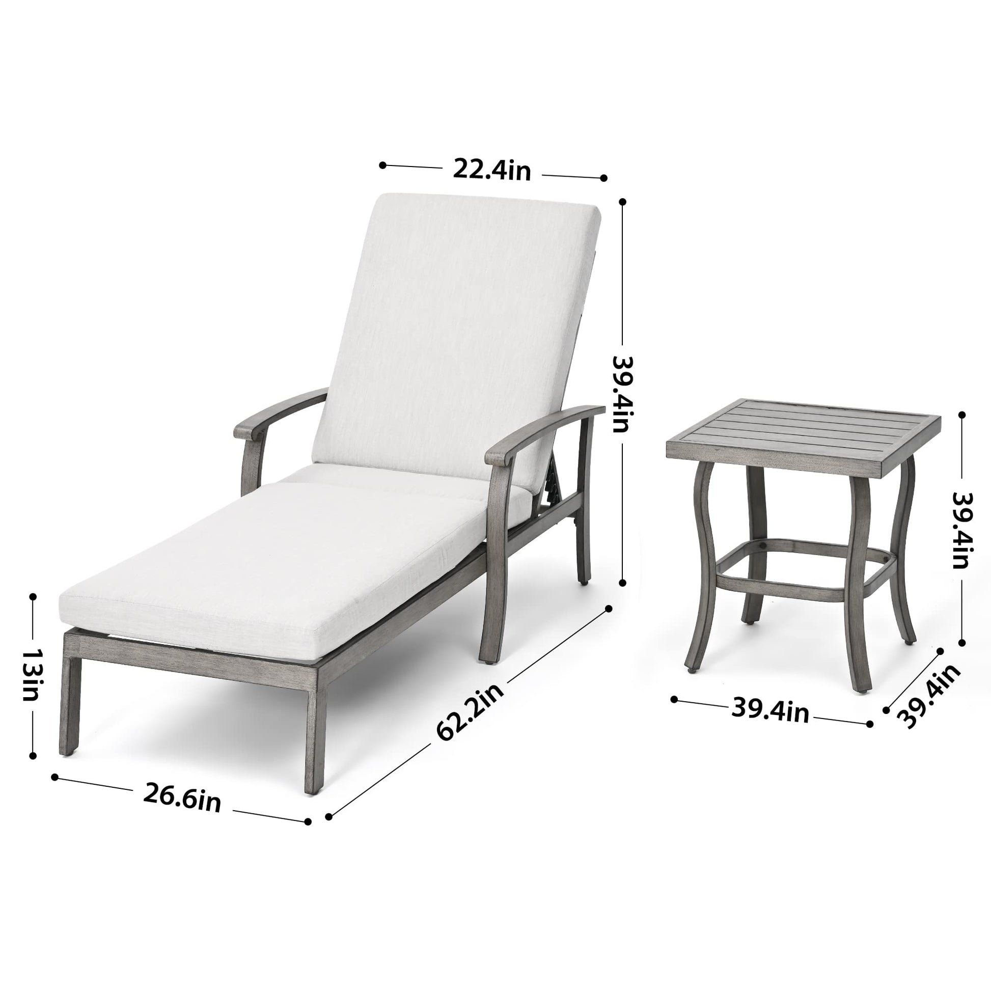 - High-quality coating Powder-coated aluminum frame lends a smooth finish and wear resistance. Our aluminum patio chaise lounge set stands the test of time and heat, resisting rust even with continued outdoor use.