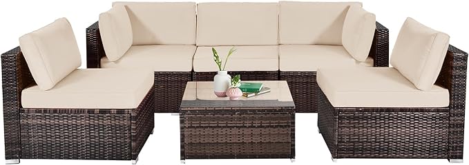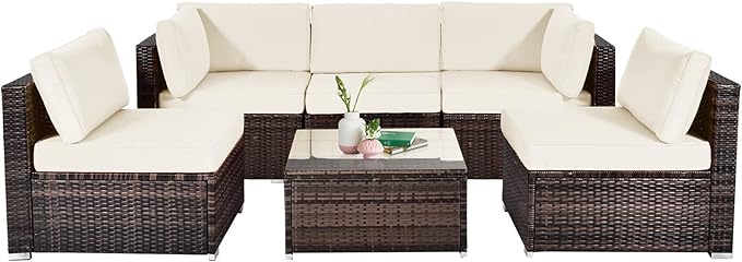 - Wide Application: Featuring weather resistant and smooth PE rattan, this outdoor sectional set not only adds a modern touch to your home decoration, but also fits the outdoor environment. It works well no matter where you want to place this outdoor furniture set.