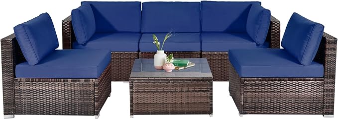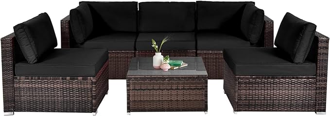 - Flexible Layout: Including 3 armless sofas, 2 corner sofas and 1 coffee table, this 6-piece outdoor patio furniture set can be changed into various shapes according to your preference and location, effective using different spaces. In addition, you are able to put drinks or snacks on the practical coffee table for easy access.