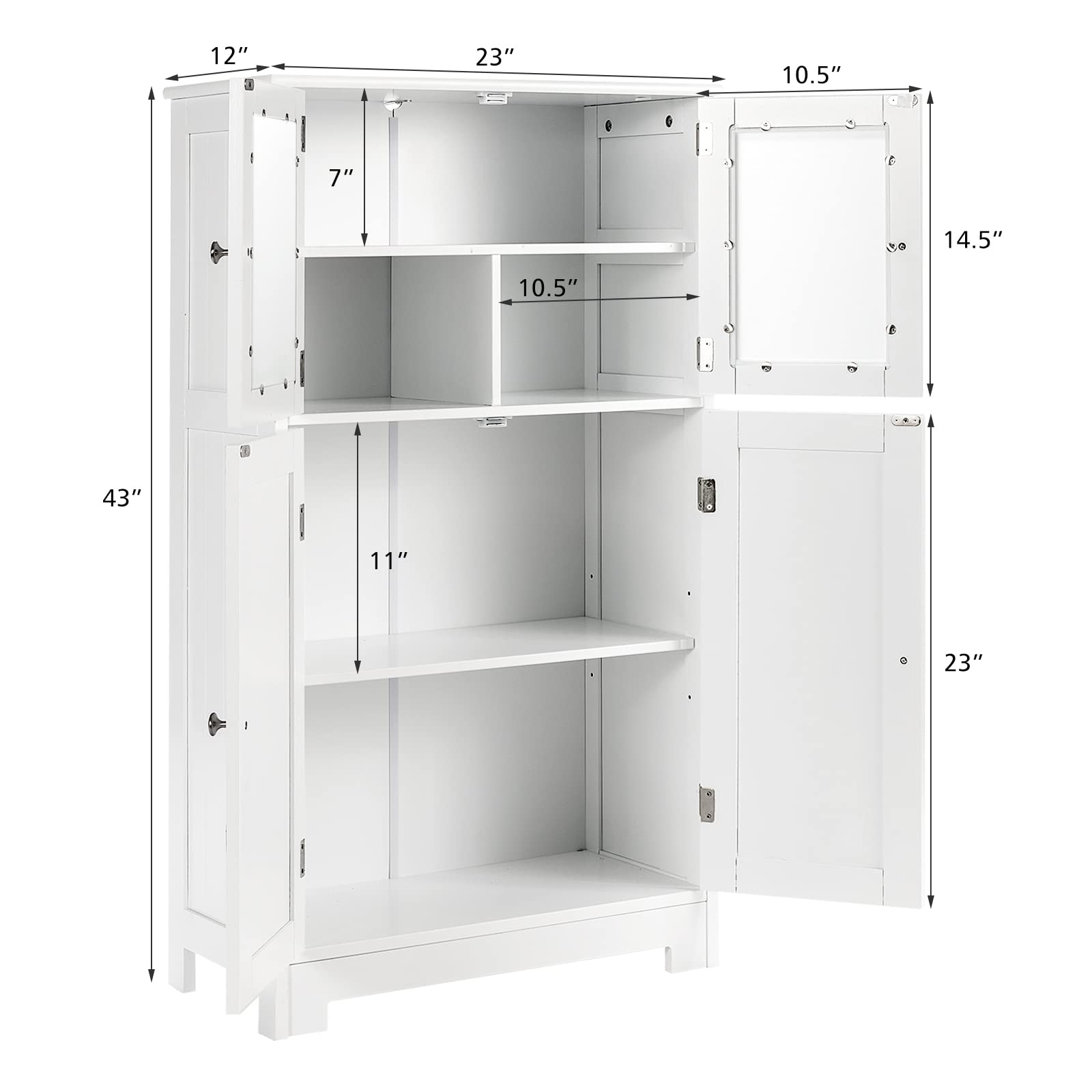 - Dimensions & Easy Assembly: The floor storage cabinet, with a proper size of 23” x 12” x 43”, is suitable for both large and small spaces. It comes with detailed instructions that help you finish the assembly step by step. And each part is labelled for you to recognize during assembly.