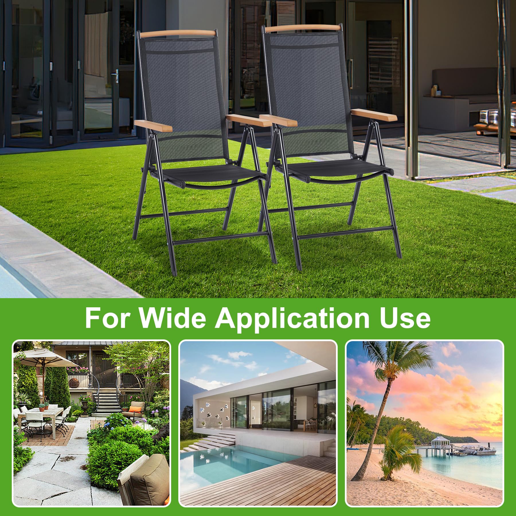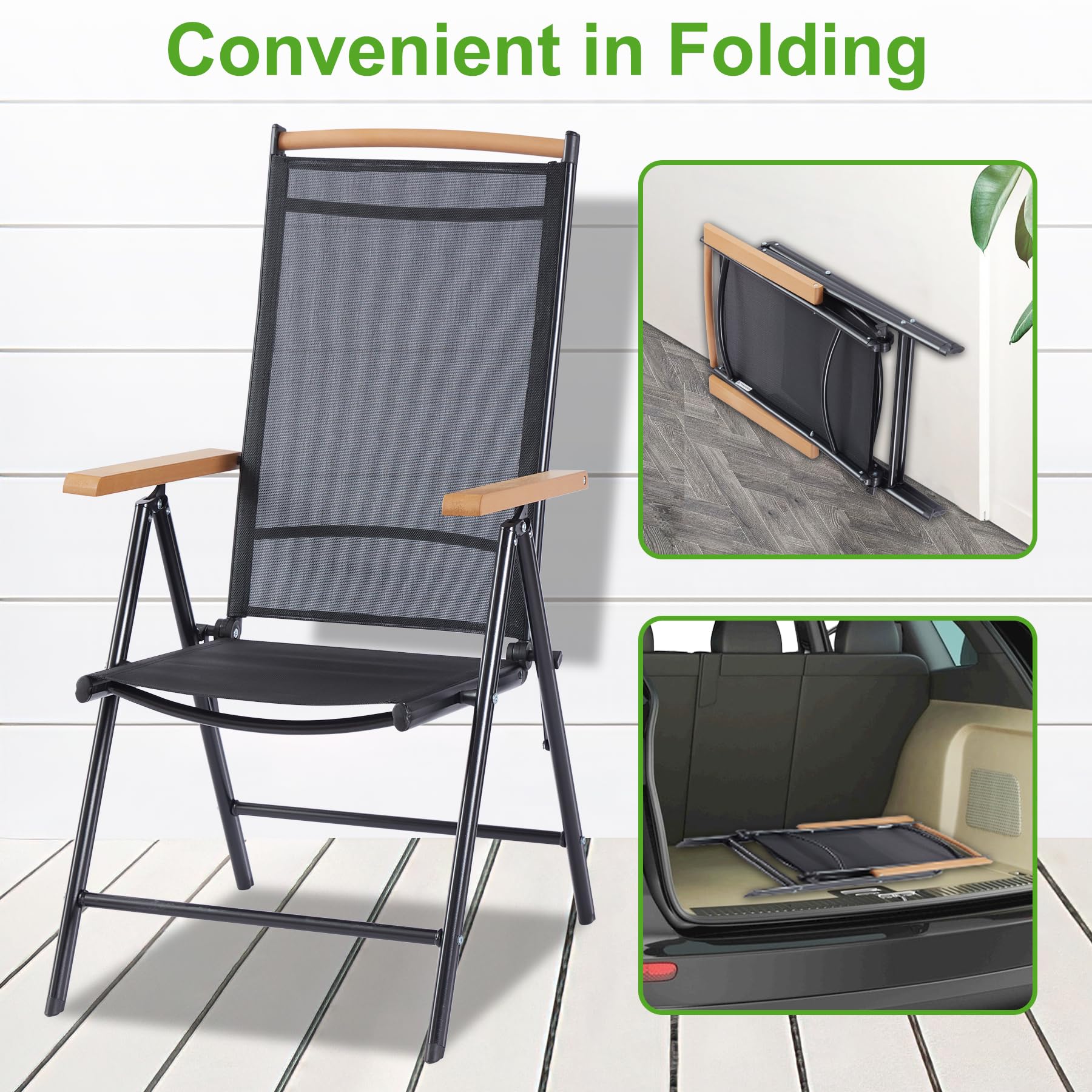 - FOLDABLE & NO ASSEMBLY REQUIRED: Our folding outdoor chairs have been pre-installed and all you need to do is unfold the chairs and sit, saving much time and effort. Featuring a lightweight and compact size, this sling chairs set can be easily folded up to store away to save space, or transported from place to place.