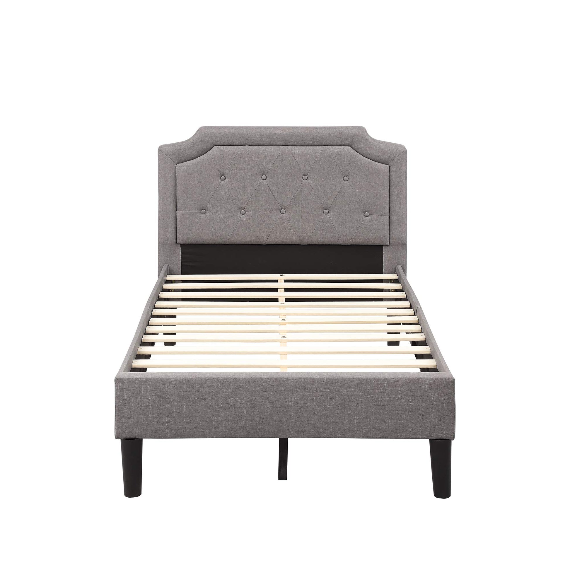 Bed Frame Upholstered Scalloped Linen Platform Bed Twin Beds Mattress Foundation