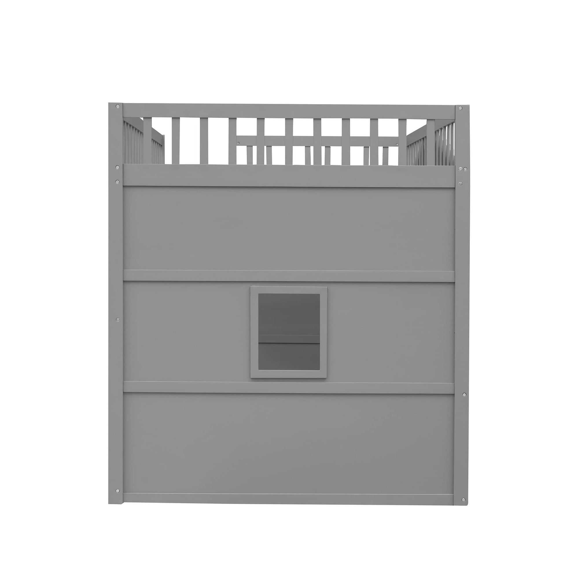 - Stylish Full loft bed features wall section with windows and door, create a semi-close space for your little one, this fun house loft bed will make any child's transition into sleeping in their own bed easy and exciting. Perfect for hours of entertainment and relaxation, the playhouse design in bright trendy white and gray color, makes this beds the perfect centerpiece for any child’s bedroom.