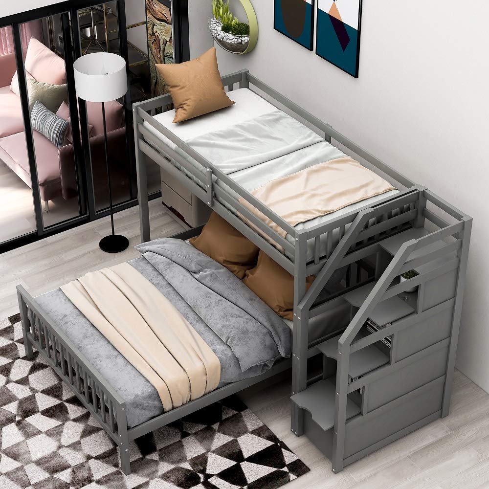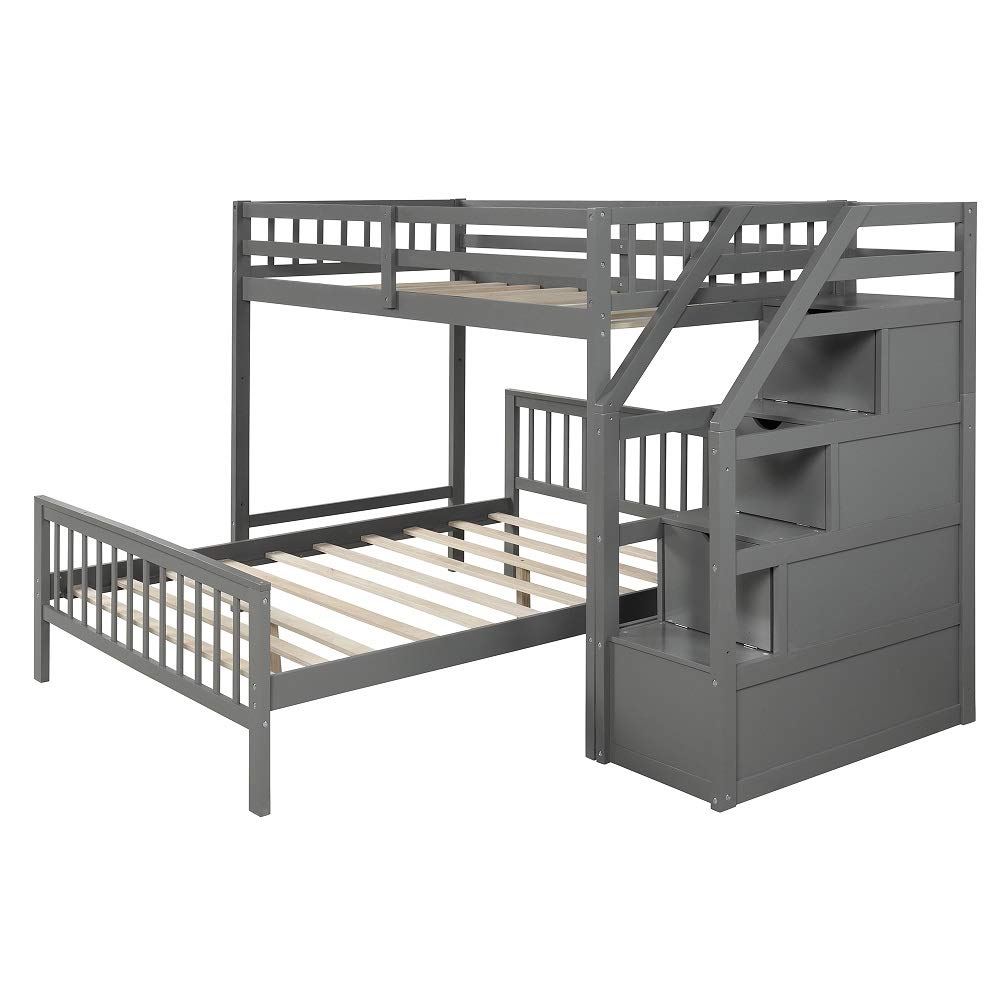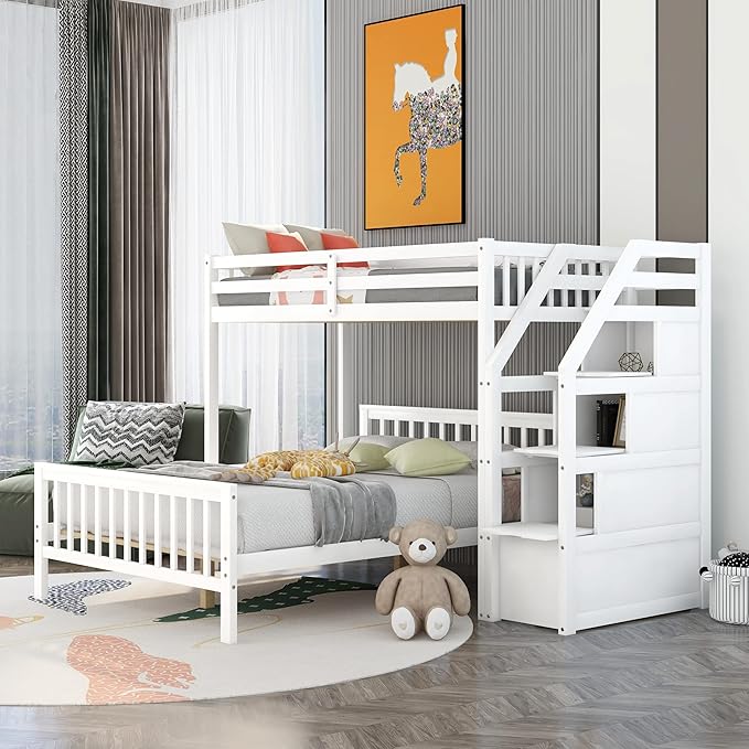 Twin Over Full Loft Beds, Bunk Beds Twin Over Full with Stairway and Storage, Full-Length