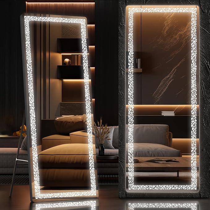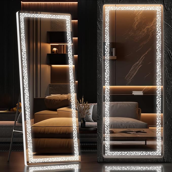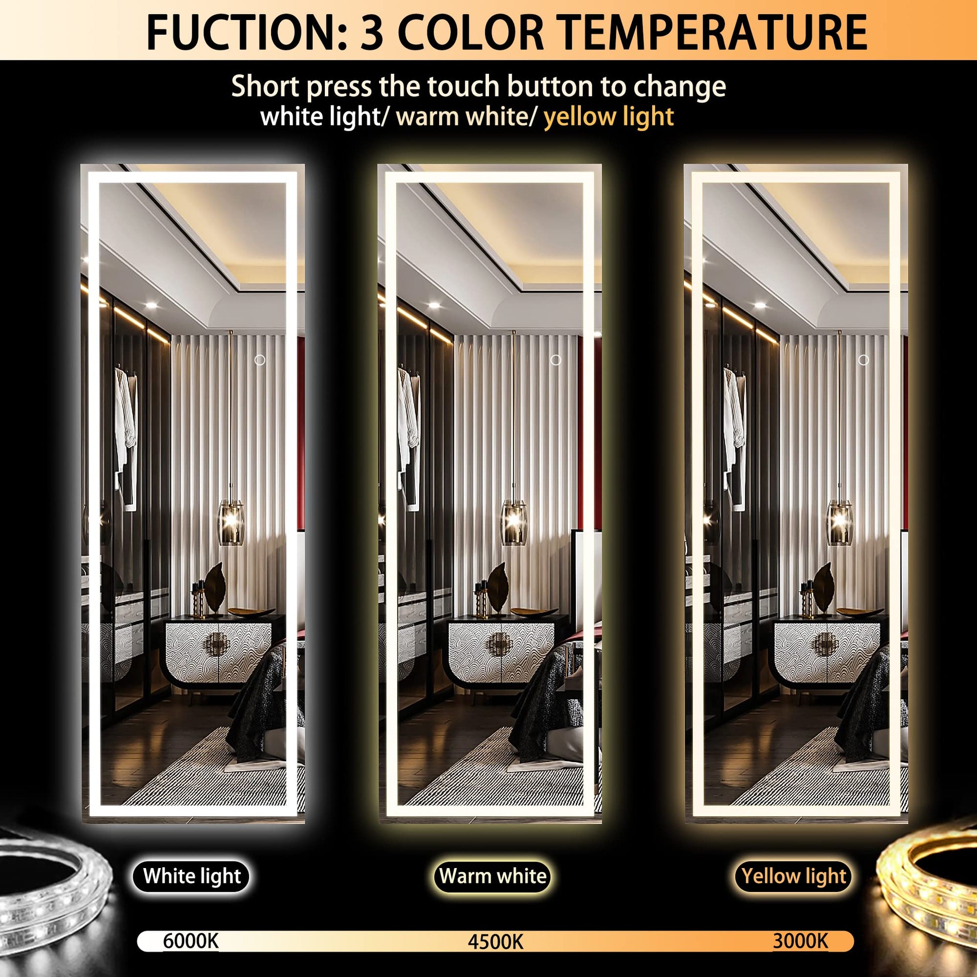 - This lighted full length mirror is multifunctional. You can press the button to change the color temperatures: Warm(3000K), natural (4000K) and white(6000K). You can also dim the brightness to your comfortable level. All these will be easily controlled by the touch button.
