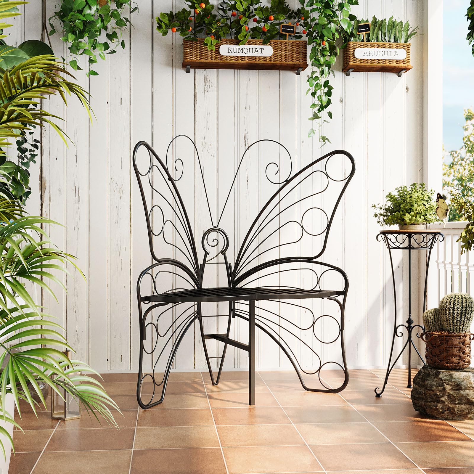 Butterfly Shaped Outdoor Bench, Black Garden Bench for Outdoor
