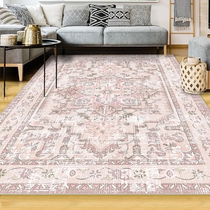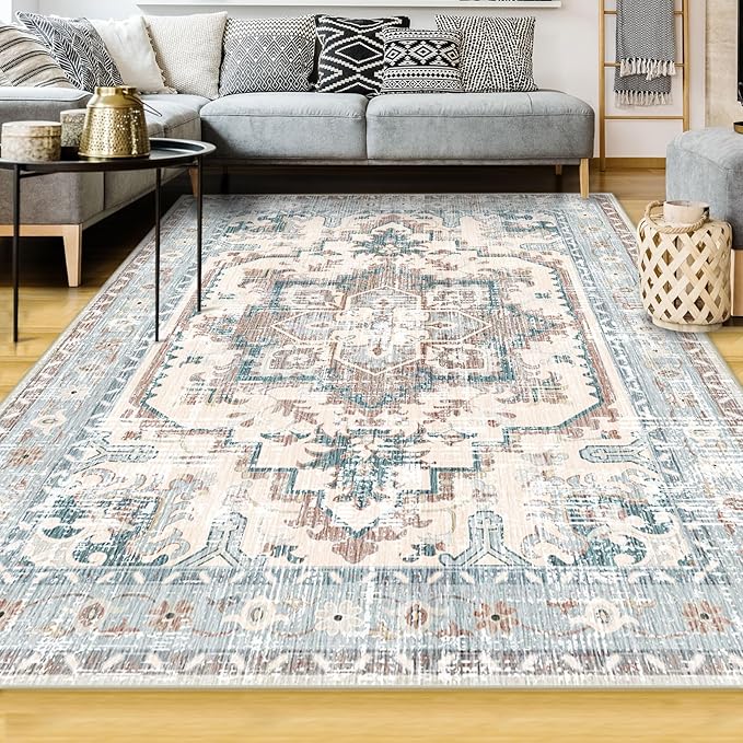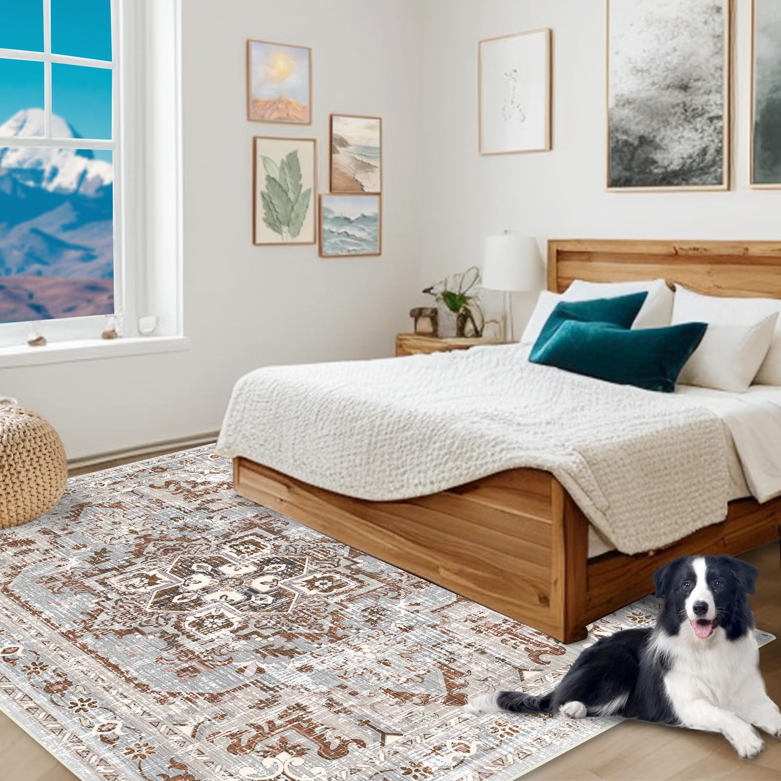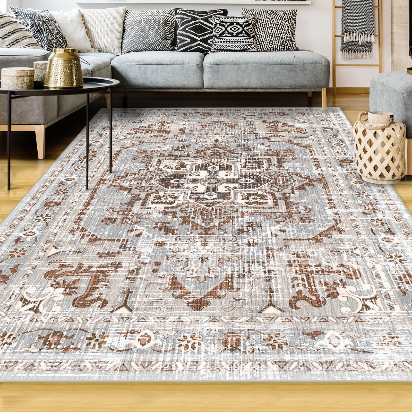 Grey Brown Area Rug, 5x7ft Farmhouse Rugs for Living Room Vintage Washable Boho
