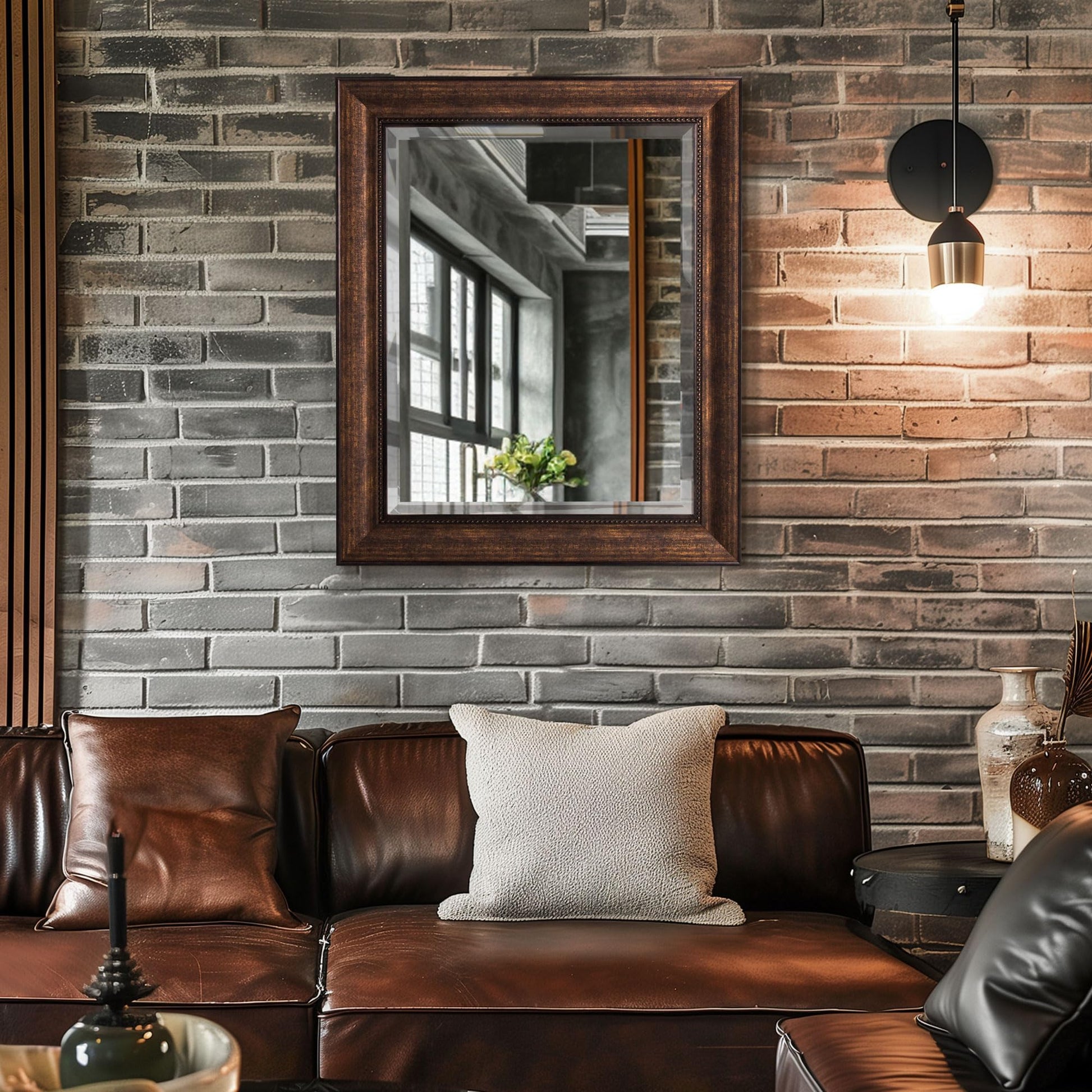 Bronze Copper Beaded Framed Wall Vanity Beveled Mirrors, Bathroom Mirrors"
