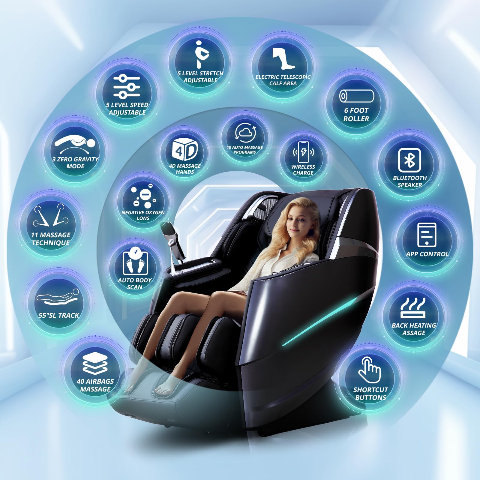 Massage Chair Full Body Zero Gravity, 55“ SL-Track Shiatsu, 10 Modes