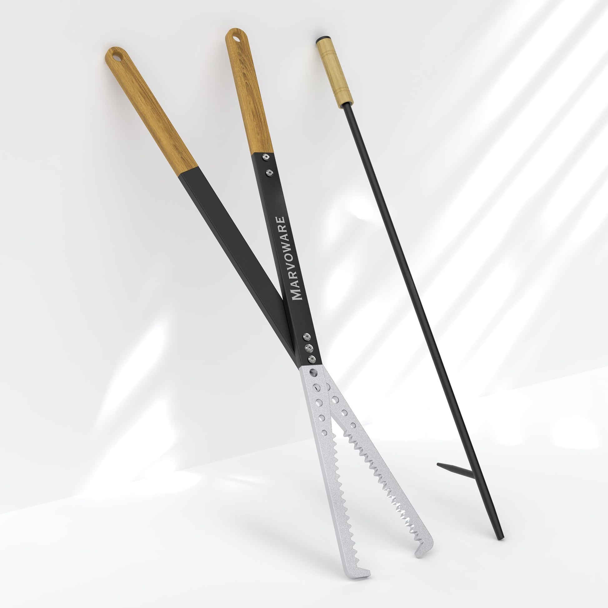 Heavy Duty Fire Tong and Fire Poker Set with Wood Insulation Handle Fireplace