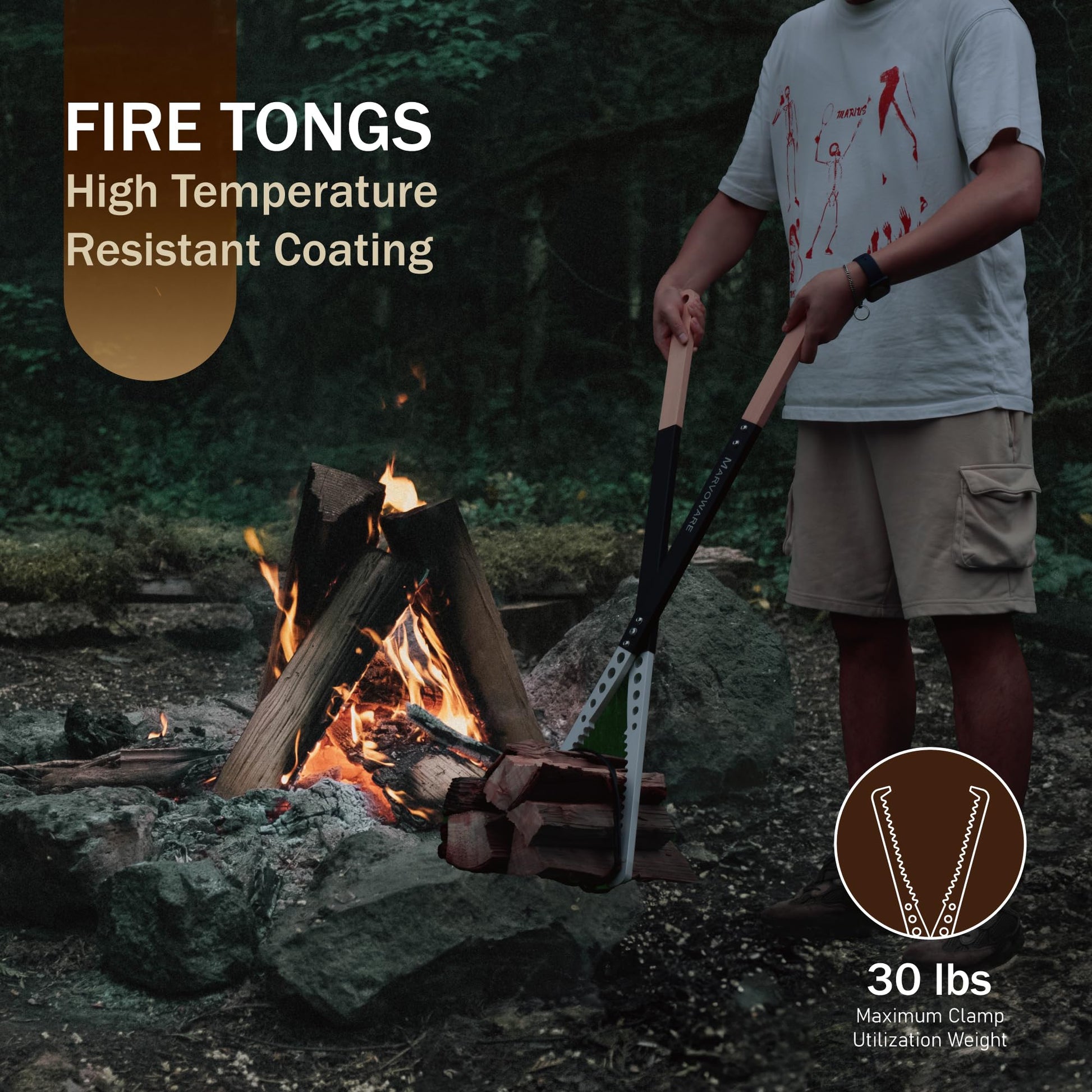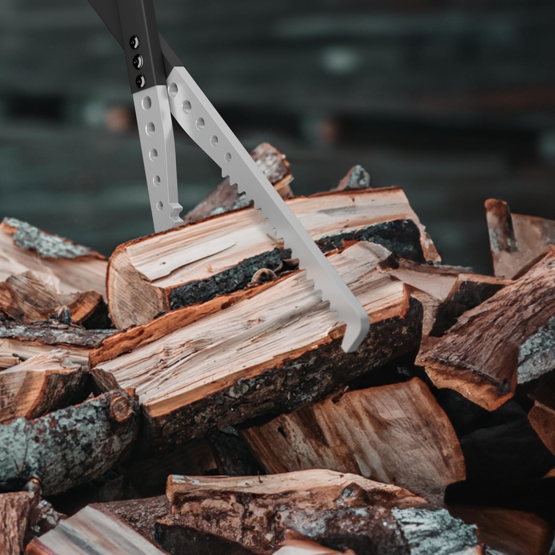 - Our log claw tongs are exceptionally sturdy, measuring 38" in length. This generous length ensures you won't have to bend over the fire, keeping you at a safe distance from the flames while adding or moving logs. These tongs allow you to easily pull, push, lift logs, and dress the embers, making fire management a breeze.