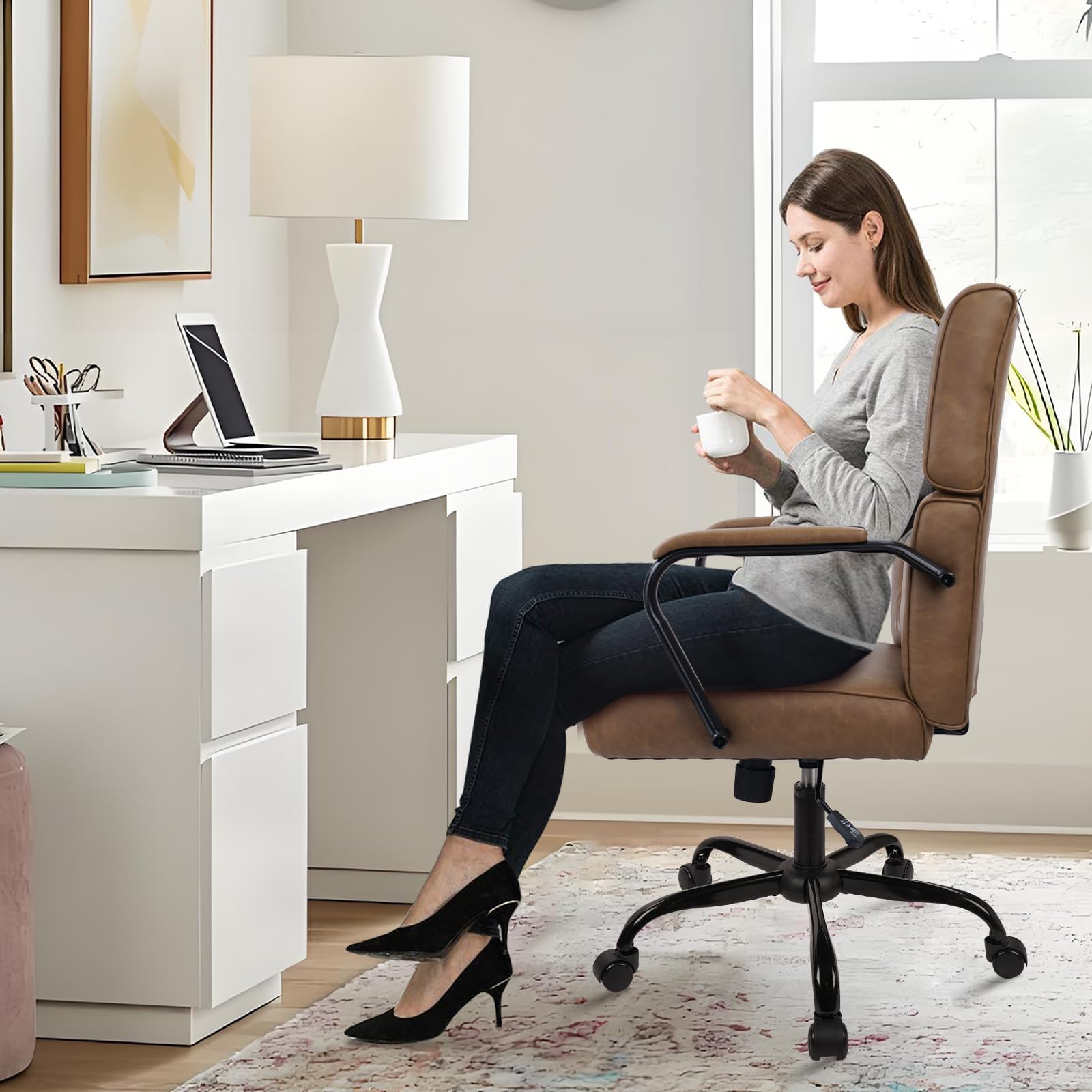 Heavy Duty Leather Office Chair - Mid Century Modern Desk Chair with Lumbar Support, 450LBS