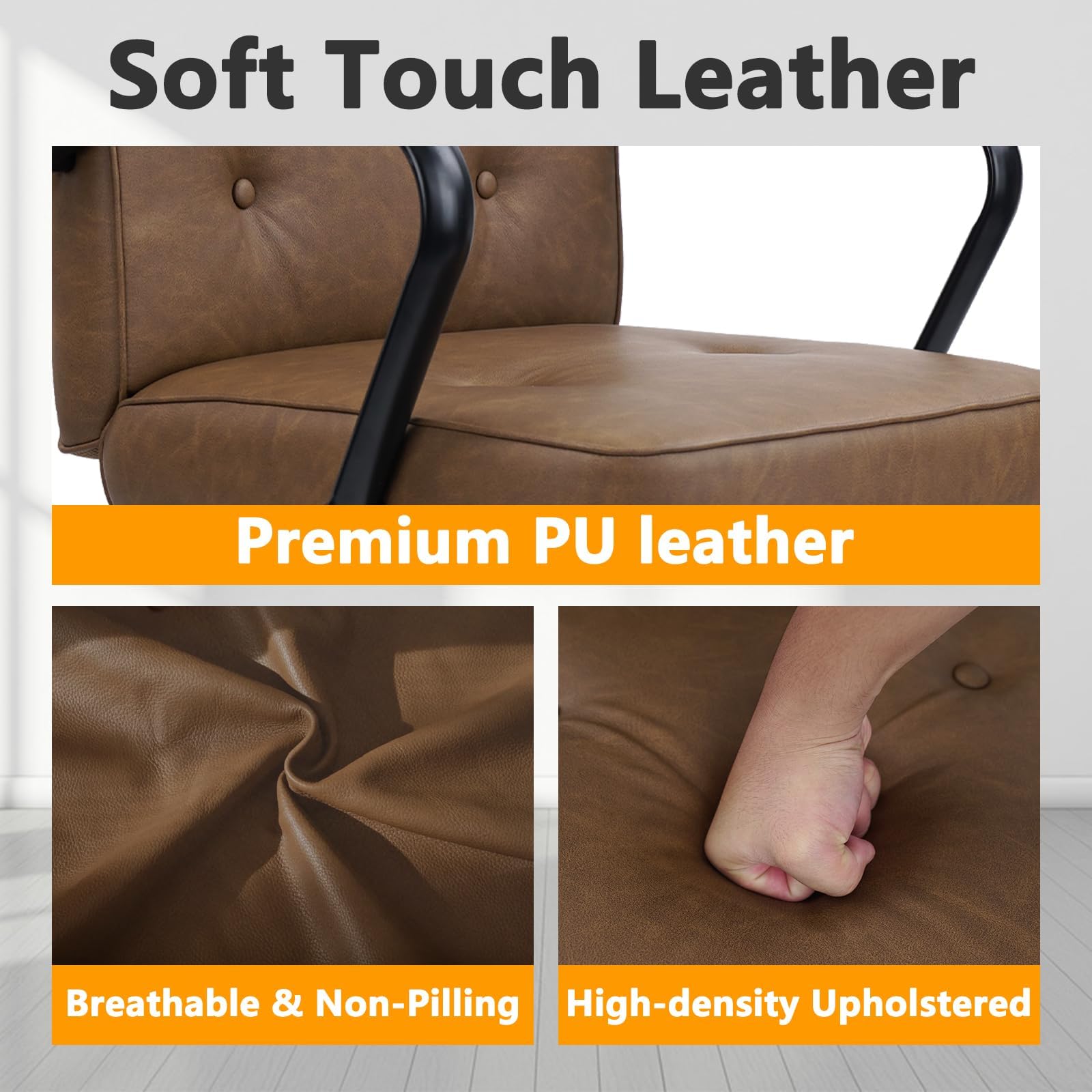 Experience premium comfort and durability with this mid-century modern leather office chair, expertly designed to support up to 450 pounds. Featuring integrated lumbar support and ergonomic armrests, this mid-back task chair combines timeless style with exceptional functionality for your home office, bedroom, or professional workspace.