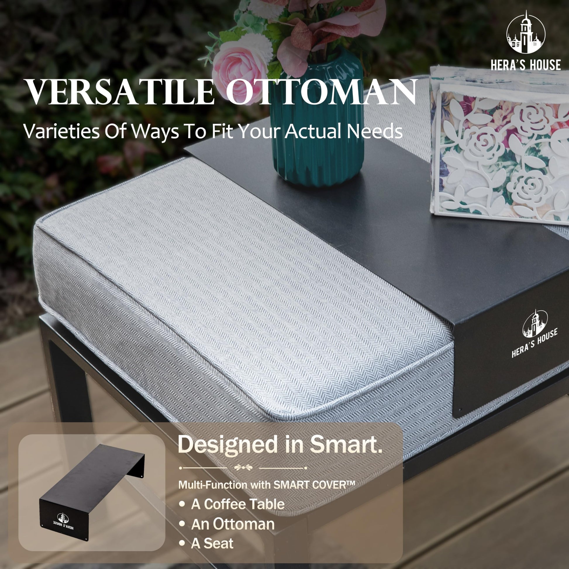 - VERSATILE MODULAR SET WITH MULTIFUNCTION OTTOMAN This 6 piece conversation is a perfect addition to your patio. You can fingure different function of the ottomans - 2 Multifunction ottomans with U sharp metal cover provide varieties of ways to fit your actual needs - you will like them.
