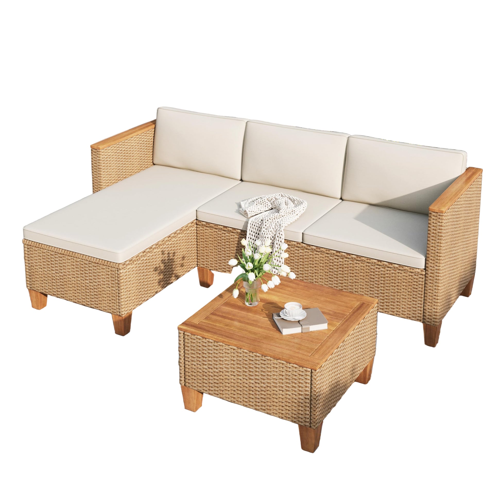 Patio Furniture Set, All Weather 3 Pieces Wicker Outdoor Conversation Sectional Set